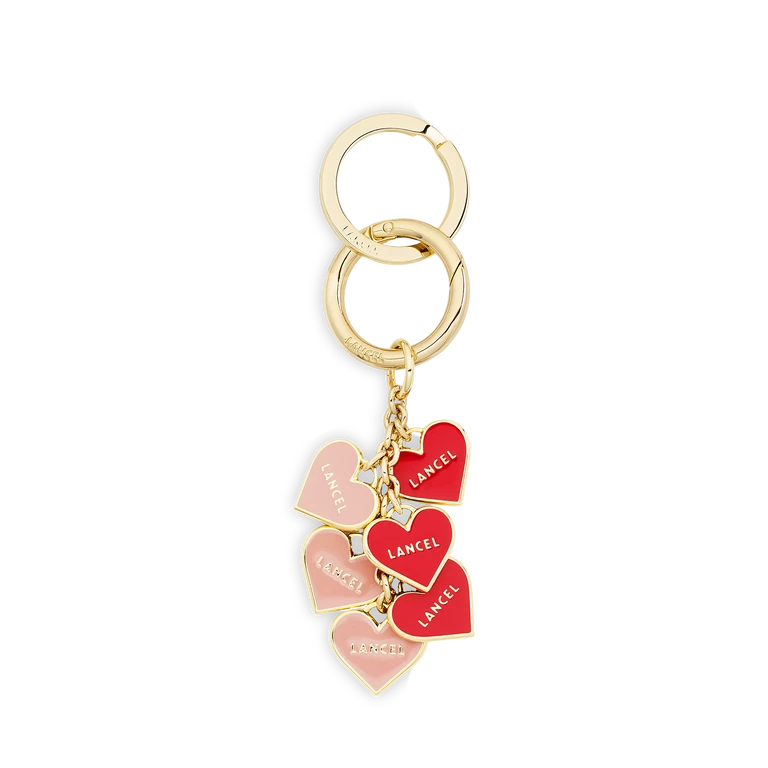 history This rich and varied collection of key rings, imbued with the spirit of Maison Lancel, will satisfy all desires. Used as bag jewellery, they perfectly accessorize the emblematic models of Lancel. details Metal and enamelCharms hearts in metal and enamel Metal ring and metal carabiner REF:A09756S3TU size 11,5 x 5 x 0,5 cm