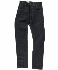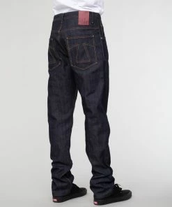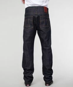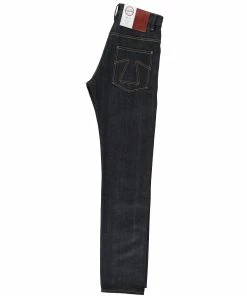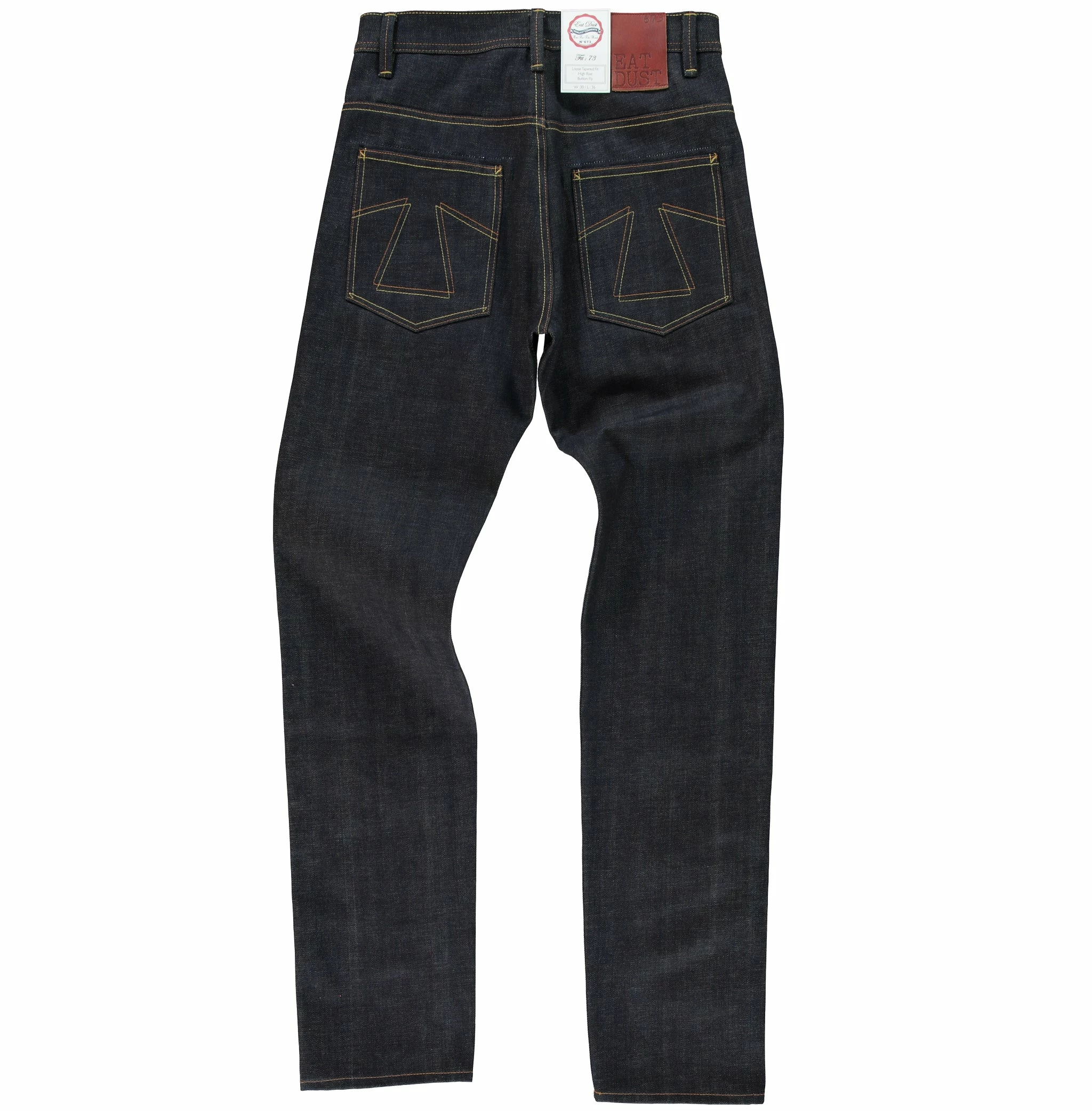 Fit 73 is a loose fitting denim, with tapered legs and a lower crotch. Made from a 13 3/4 Oz double ring Japanese selvedge denim in indigo blue. Features 2 reinforced back pockets, with signature Z-bar stitching. Plus a faded copper Eat Dust button, double prawn fly buttons, authentic rivets & a leather Eat Dust label on the back.Â