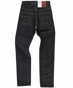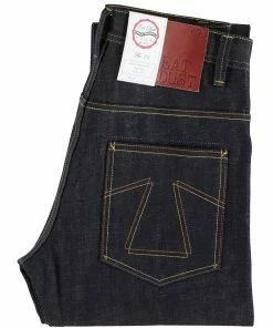 Fit 73 is a loose fitting denim, with tapered legs and a lower crotch. Made from a 13 3/4 Oz double ring Japanese selvedge denim in indigo blue. Features 2 reinforced back pockets, with signature Z-bar stitching. Plus a faded copper Eat Dust button, double prawn fly buttons, authentic rivets & a leather Eat Dust label on the back.Â