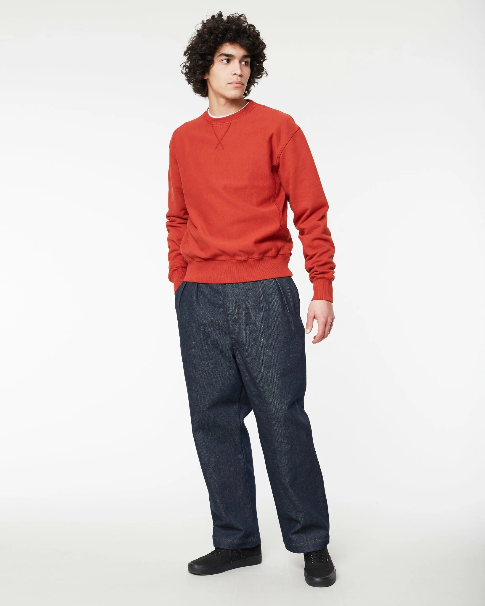 A classic done right. This is the crewneck sweatshirt as we all know and love it. No frills, premium cotton, with ribbed trim cuffs, ribbed sides, collar and hem, and the classic dorito finish on the neck.Â
