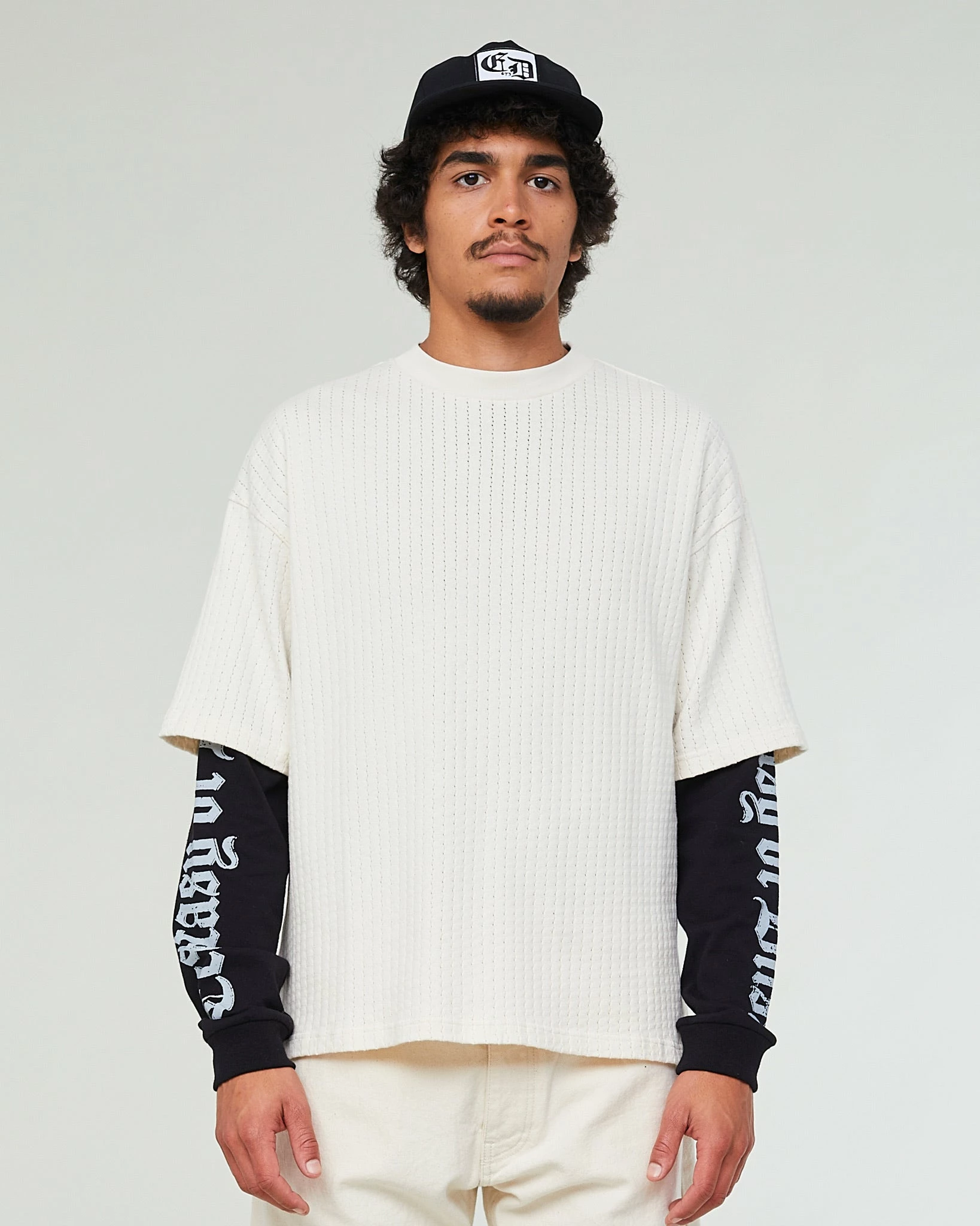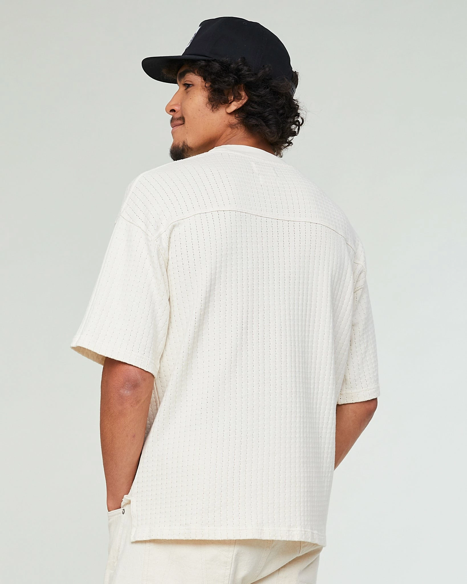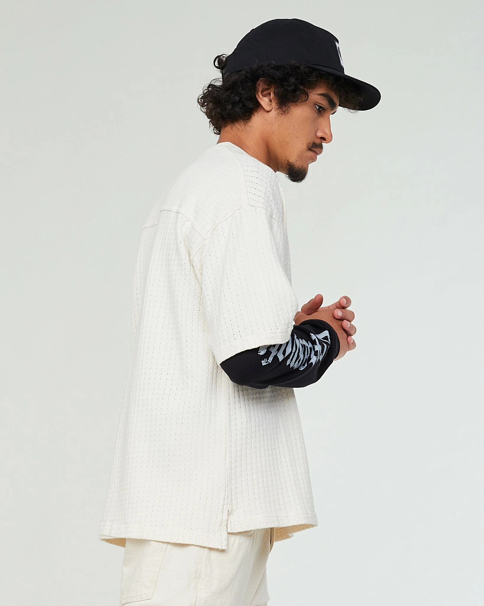 Our Big T isn’t just big and oversized, it’s also as soft as can be. This mesh version is something else for sure. Finished with elbow-length sleeves and a subtle slit down the sides. Cut just a bit longer on the back as well.Â