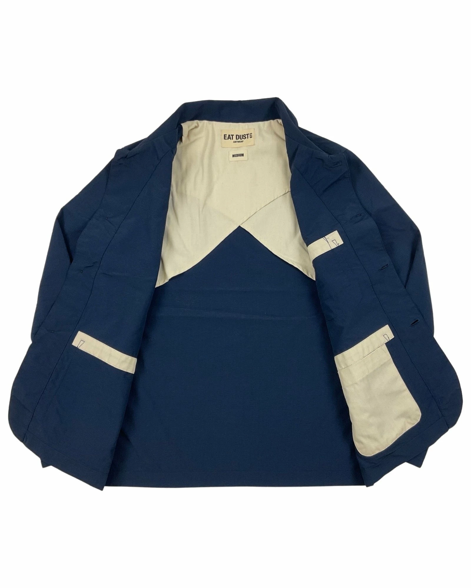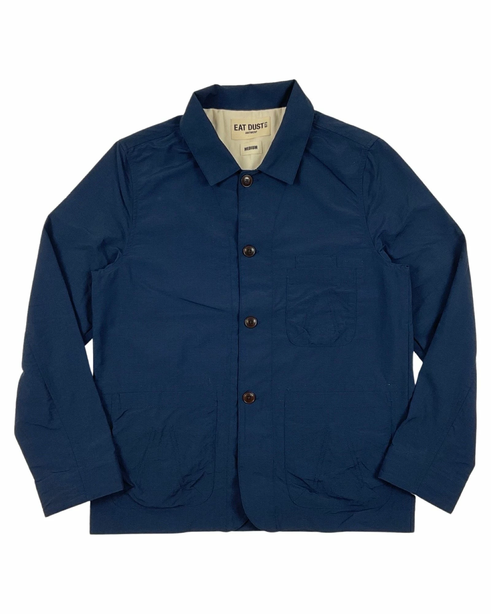 Our Combat Blazer is a loose fitting worker jacket, that can be worn as a blazer as well, as it’s cut on the same length. Made from a lightweight rip-stop nylon, featuring 2 large and reinforced hip pockets with tonal Z-bar stitching, and a double chest pocket. All finished with signature Eat Dust corozo buttons.