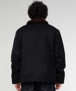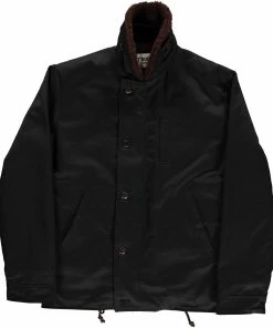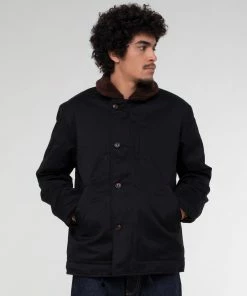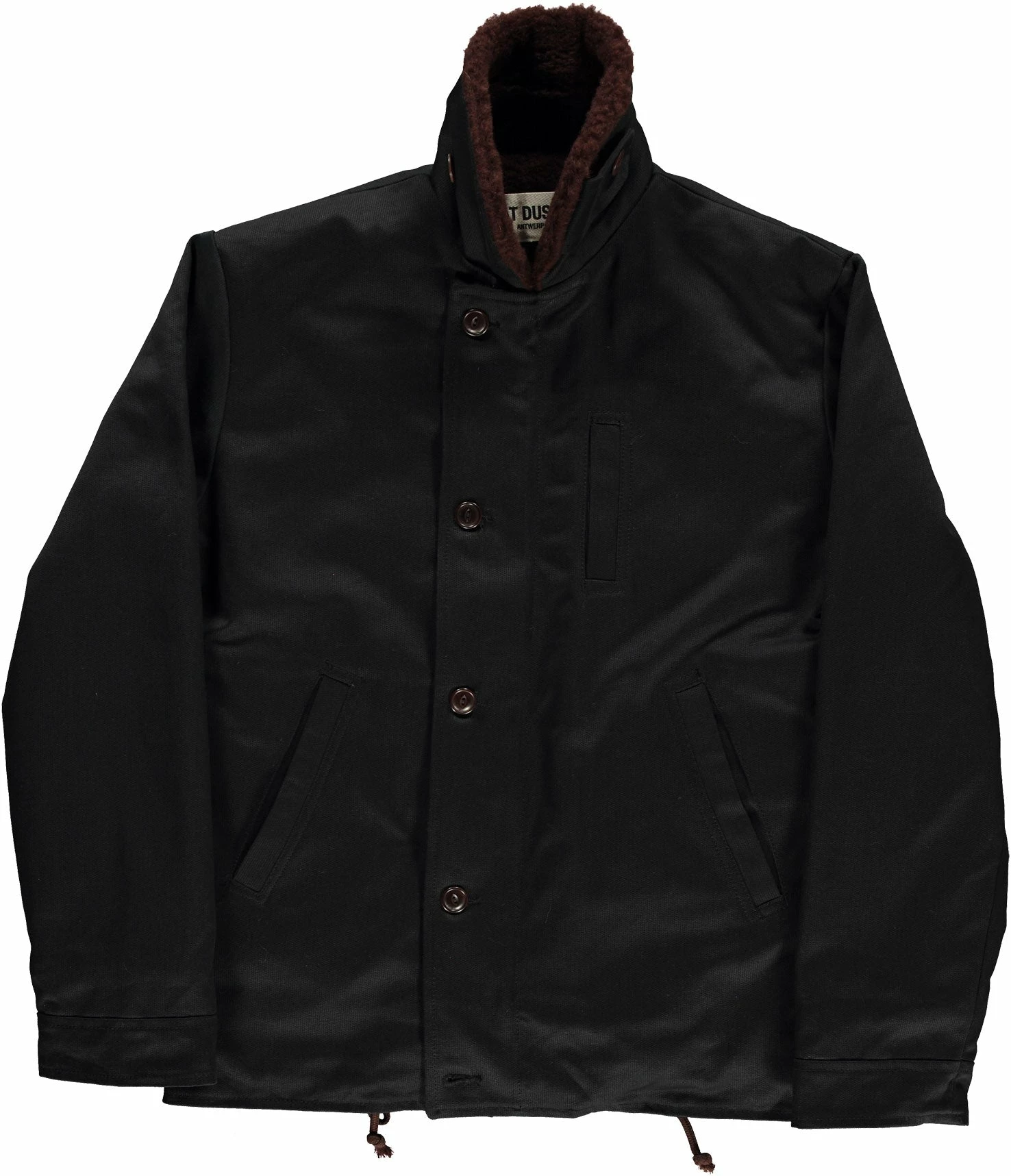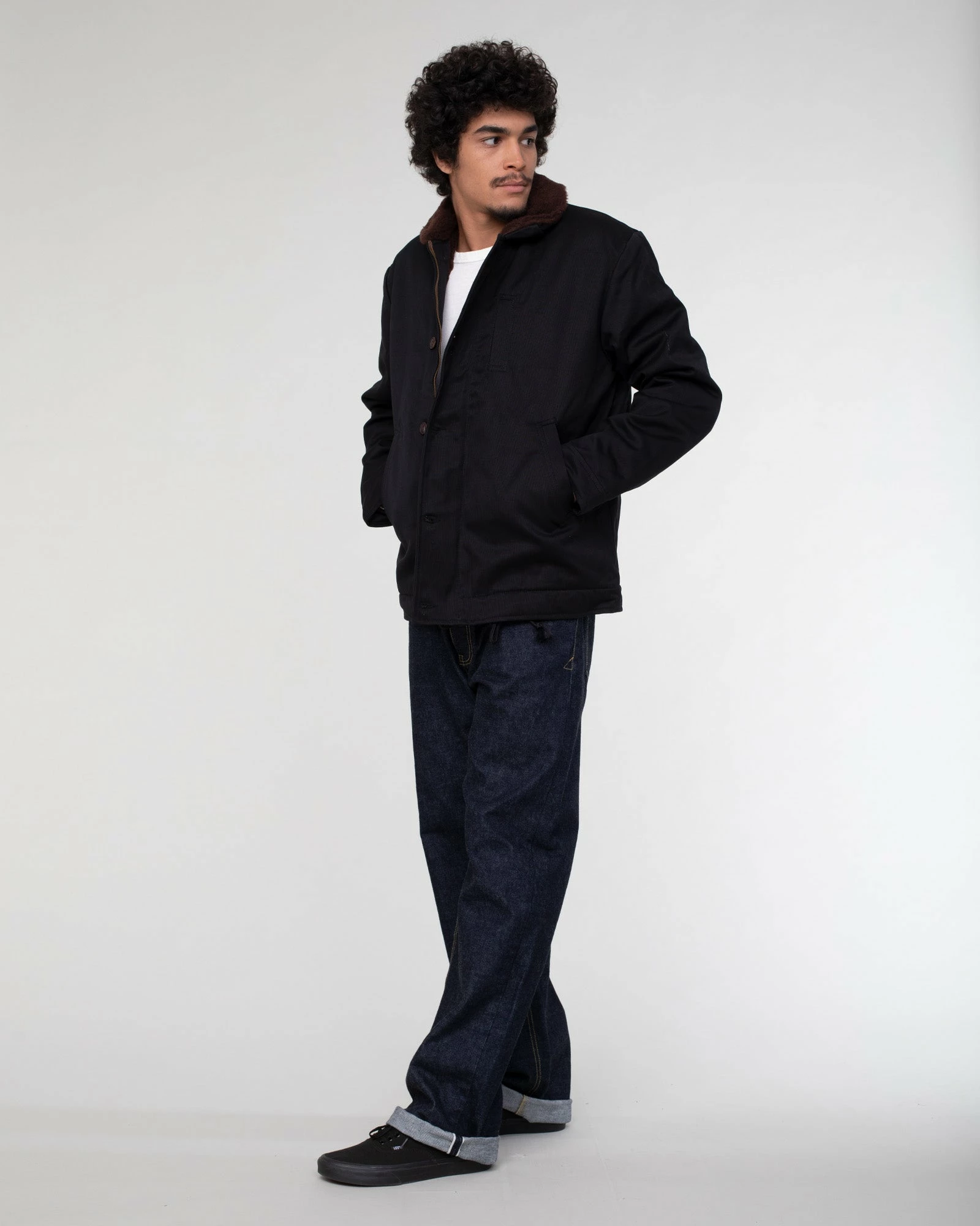 Our interpretation of the classic deck jacket comes in black 100% cotton Bedford Cords from our Belgian mill, featuring 2 front hip pockets (lined with a wool blend) and a chest pocket. The body was lined with wool, the sleeves with a wool blend and there are storm cuffs in a knitted rib. Also has an interior pocket. Produced in limited quantities so grab one while you can!
