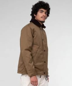 Our interpretation of the classic deck jacket comes in 100% cotton Bedford Cords from our Belgian mill, featuring 2 front hip pockets (lined with a wool blend) and a chest pocket. The body was lined with wool, the sleeves with a wool blend and there are storm cuffs in a knitted rib. Also has an interior pocket. Finished with a Bee Dust patched stitched on the chest!