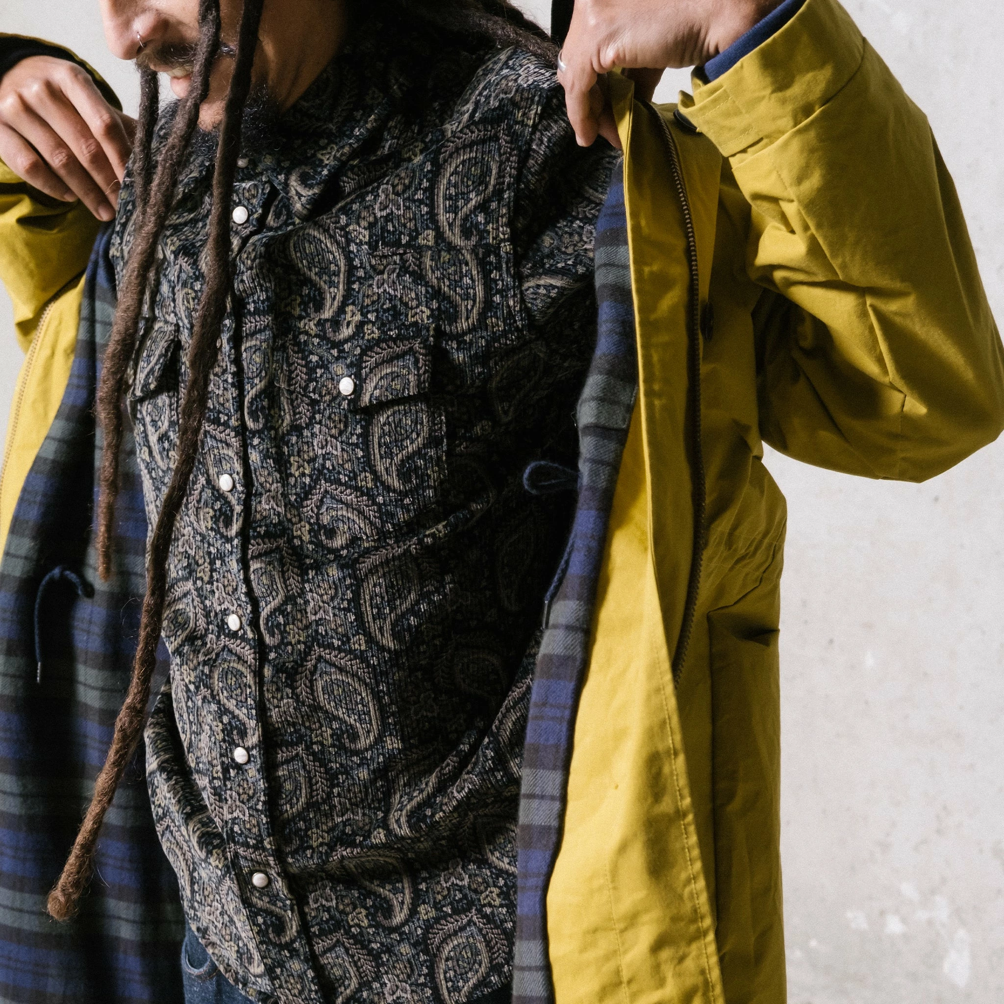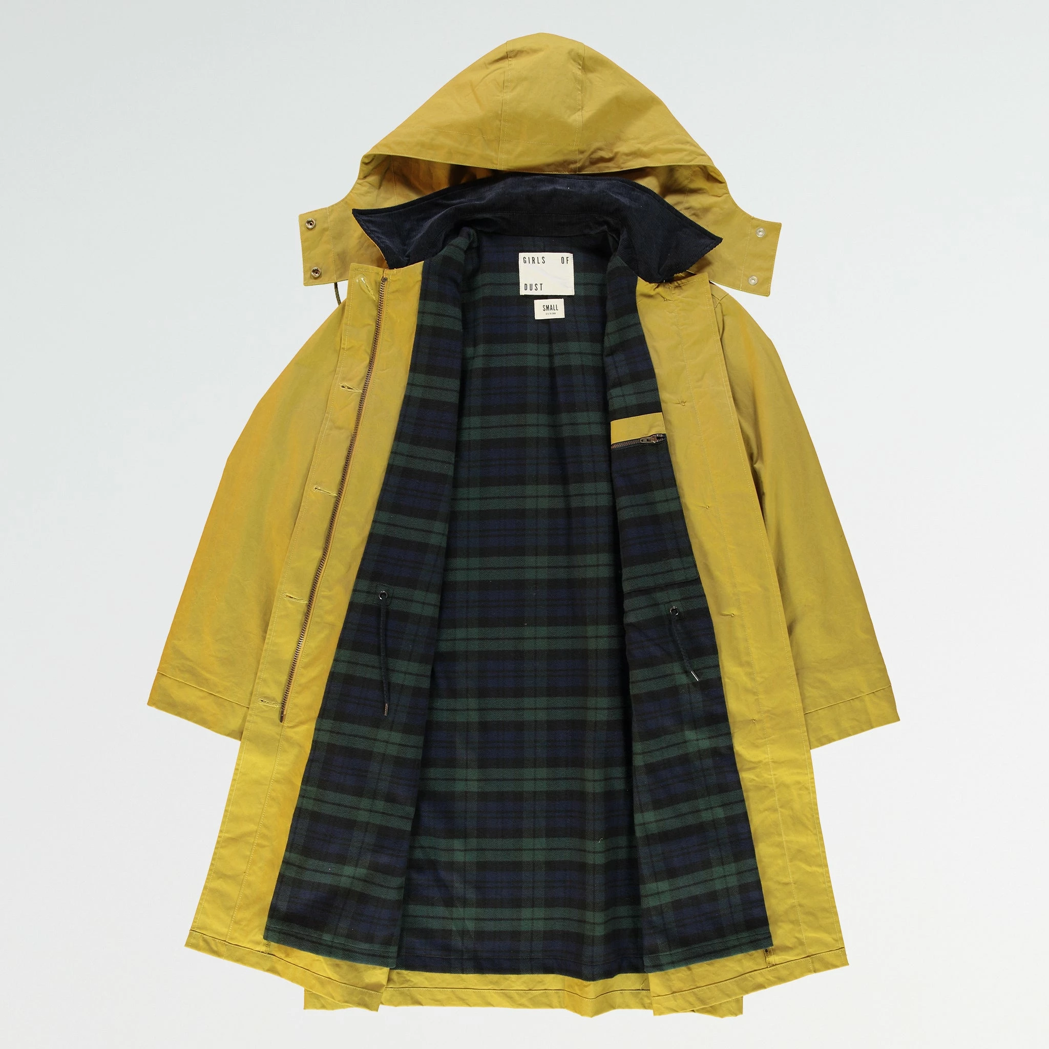 Perfectly combining form and function, our Field Coat was designed to get you through Autumn & Winter without any worries. A super practical outerwear staple, with large flap pockets, a contrasting corduroy collar and a detachable hood. The fabric we used is an incredible British dry waxed cotton, lined with a checked flannel.