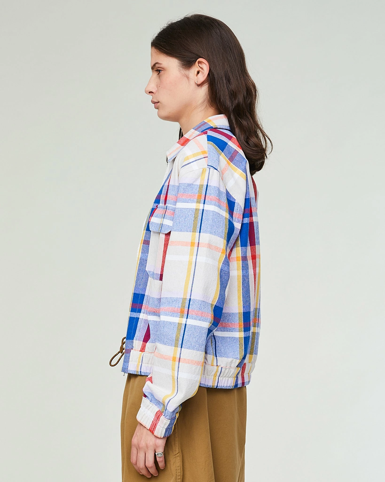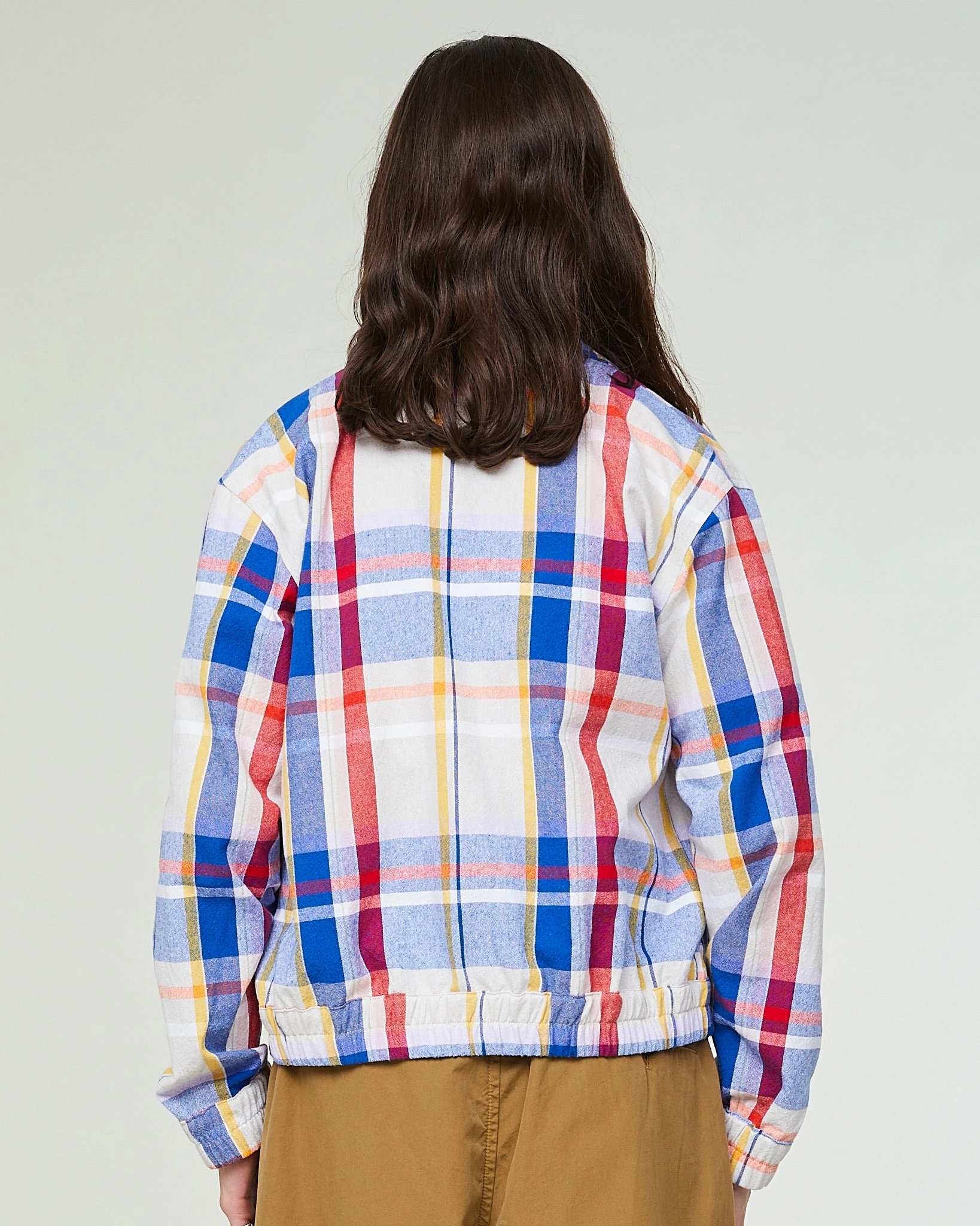This checked and colorful Bomber Shirt can easily double as a light jacket, with its ample cut and zipper closure. Just the right piece to liven up your look, no matter where you go.