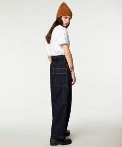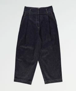 The British Worker is the absolute best seller among our women’s pants and we can see why. It combines a contemporary street style with a rugged worker edge. High on the waist, pleated legs, with a singe flap pocket on the back. Legs are loose and rounded, tapering towards the ankles. All in a high end organic Portuguese selvedge denim.