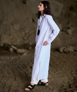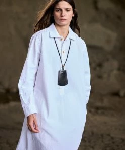 Our Chemise Dress scores high on the comfort scale, with its super relaxed cut (basically an oversized men’s shirt but extra long) and simple – yet timeless – style. The slits on the sides give it that extra feminine touch. Changing things up from your regular cotton, these were made from a crisp and fresh seersucker fabric.