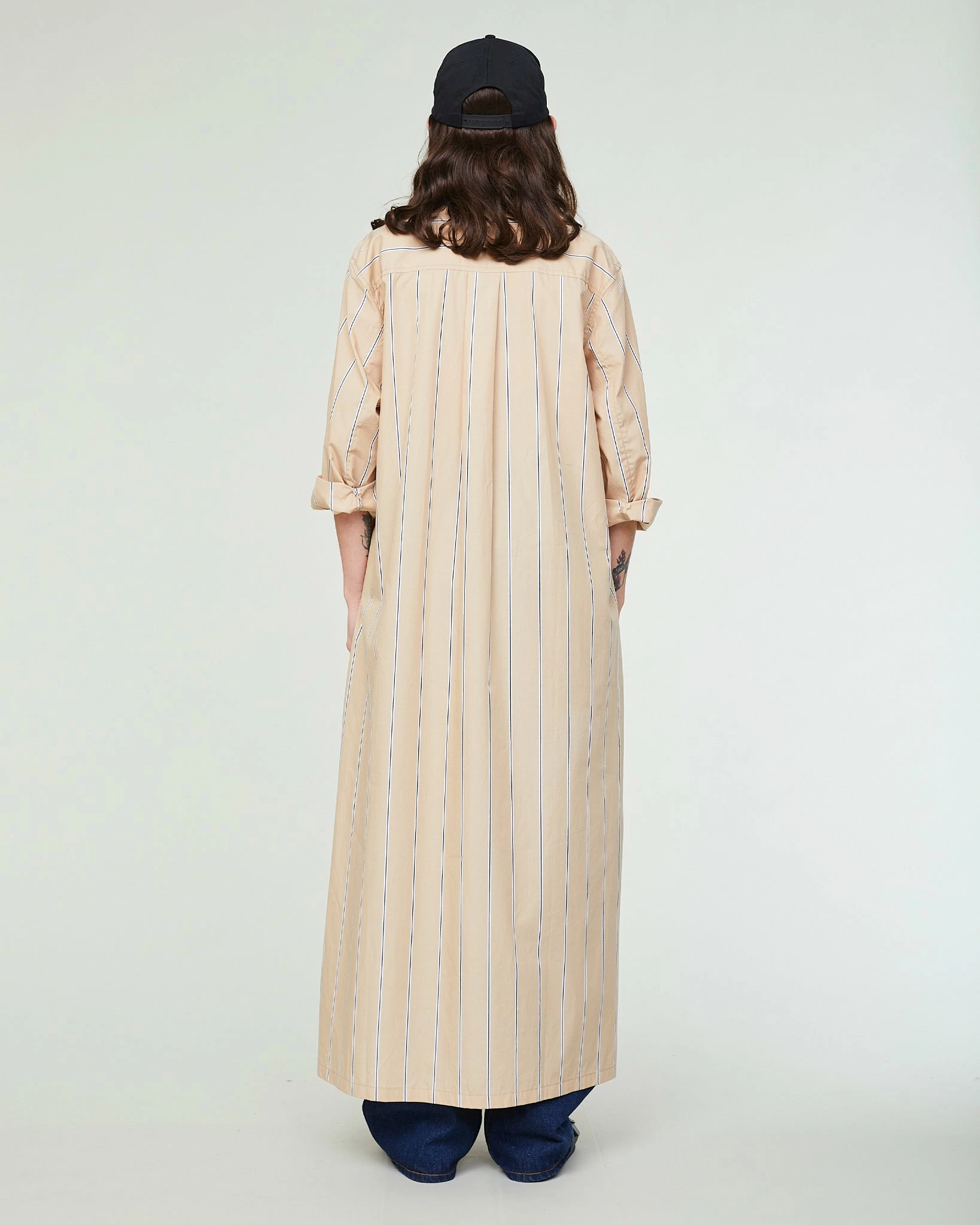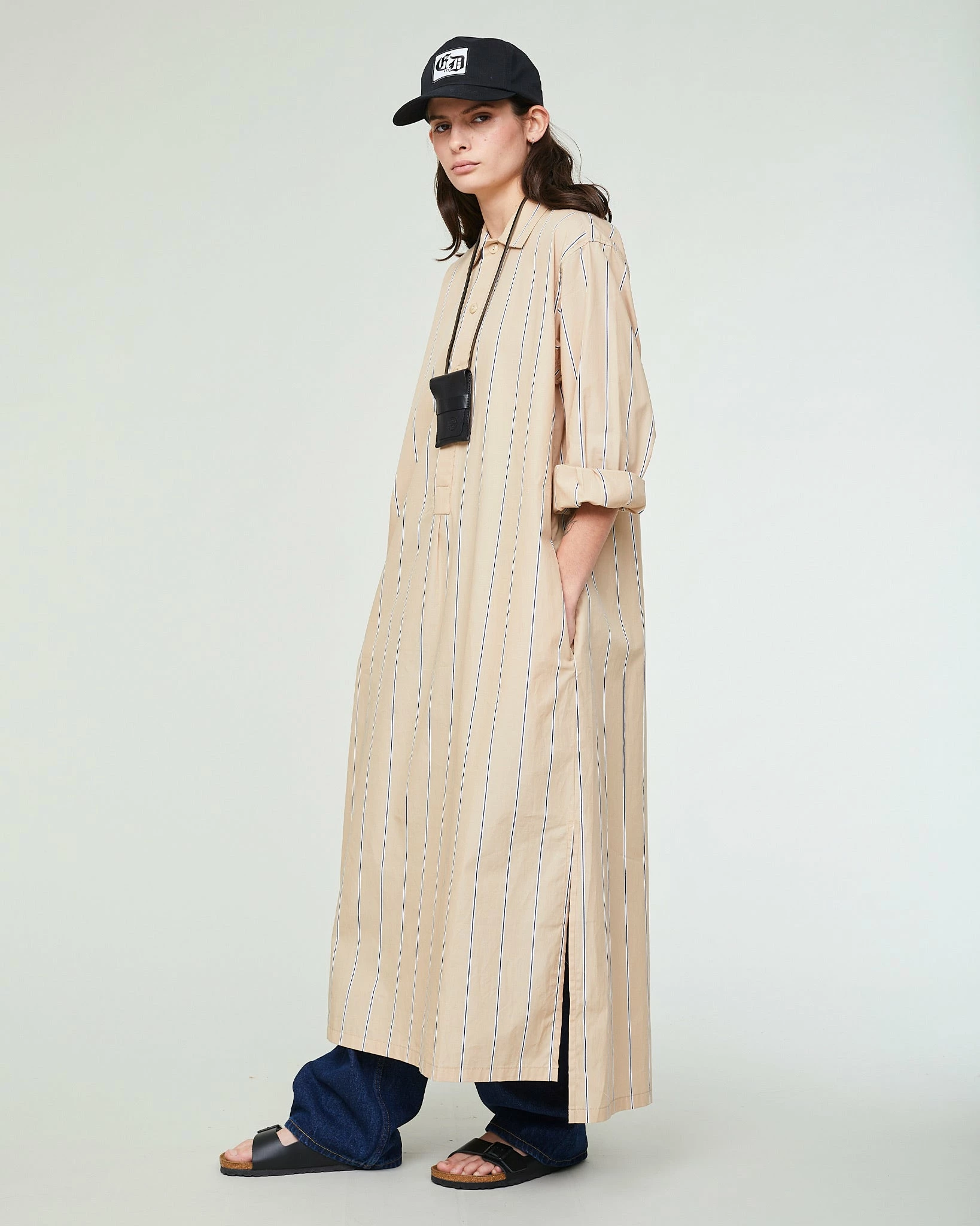 Our Chemise Dress scores high on the comfort scale, with its super relaxed cut (basically an oversized men’s shirt but extra long) and simple – yet timeless – style. The slits on the sides give it that extra feminine touch. Changing things up from your regular cotton, these were made from a beautiful, crisp poplin cotton with subtle stripes.