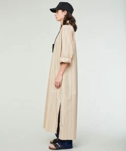 - G.o.D Chemise Dress in Poplin Stripe Sand