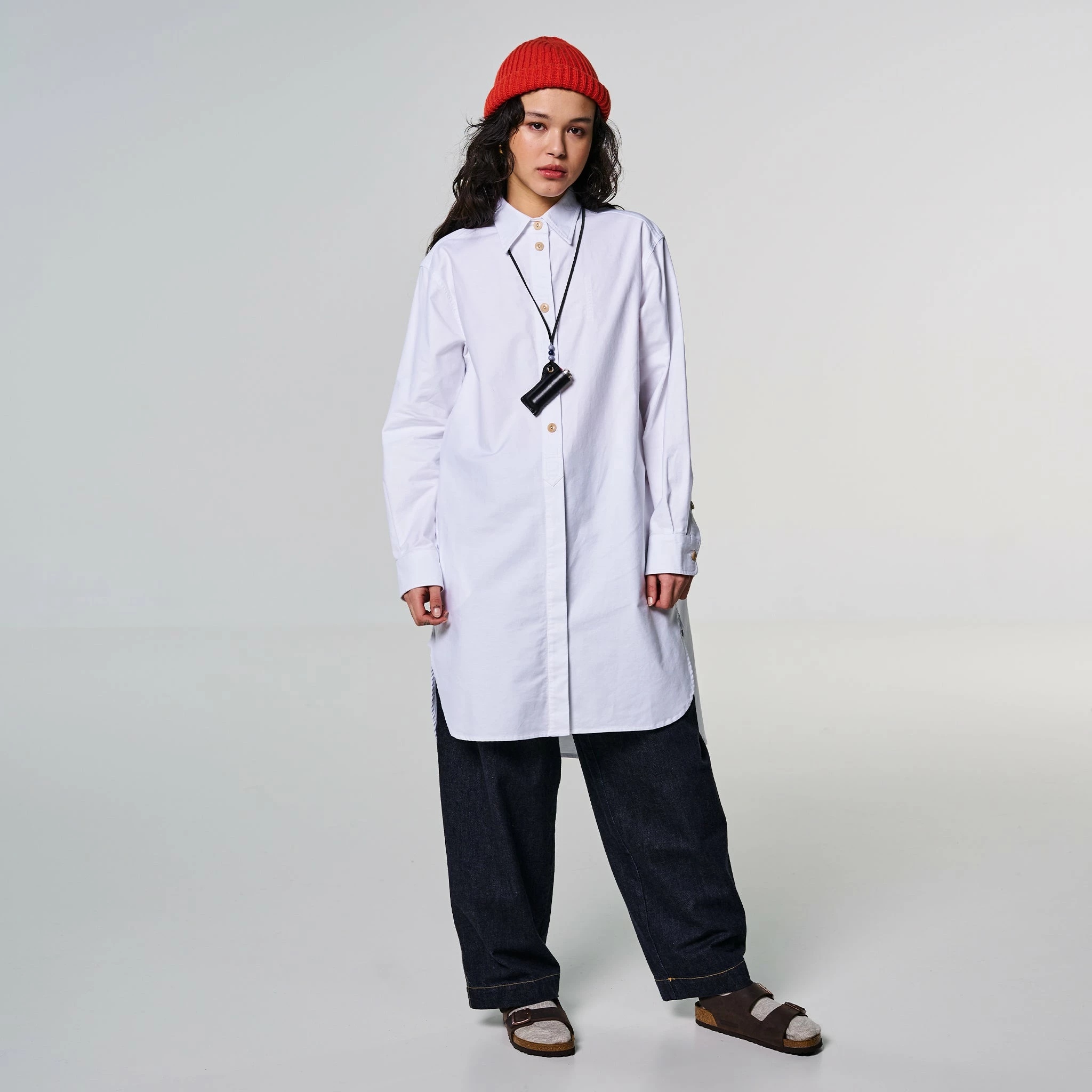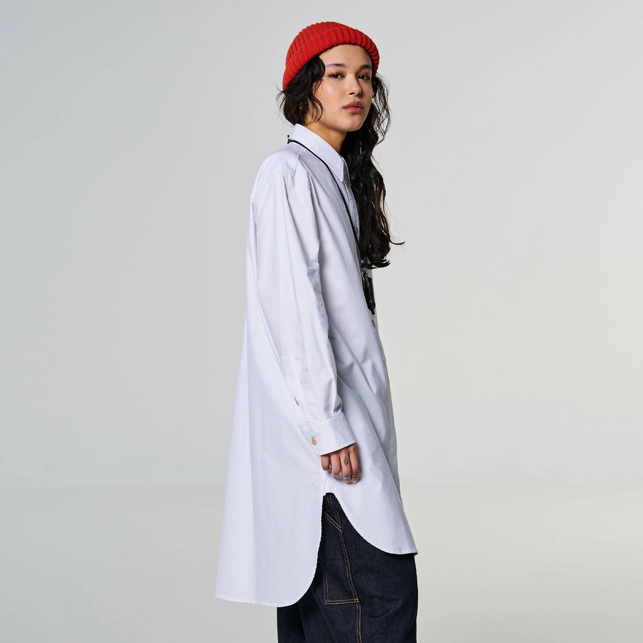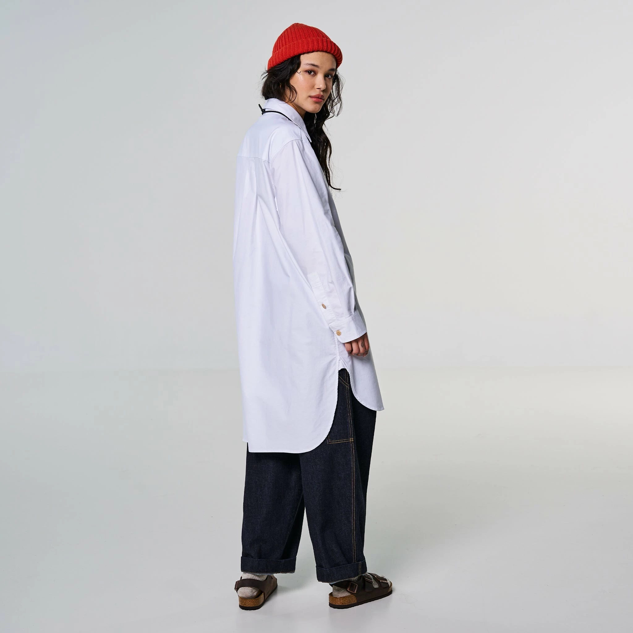 Say hi to Cyrus, our newest shirt style, but it’s a bit more than just a shirt. Cut at a 3/4 length, this is a maxi tunic-style shirt with a curved hem, half hidden button placket and a longer length on the back panel. Classic white Oxford cotton. You can wear it as a dress as well, with tights.Â
