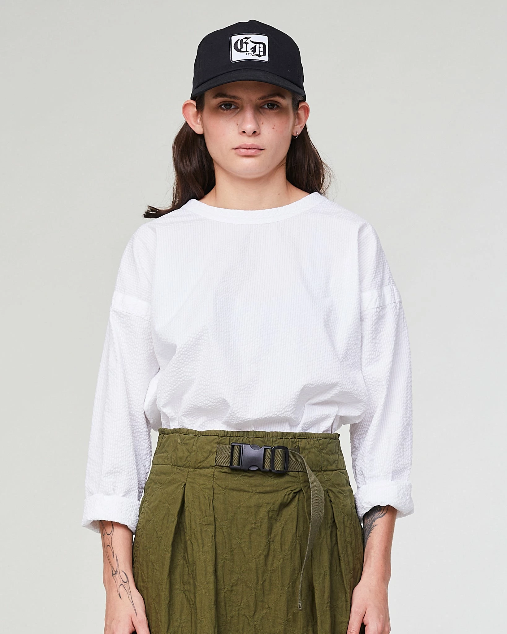 - G.o.D. Gardener Smock in White Seersucker Cotton