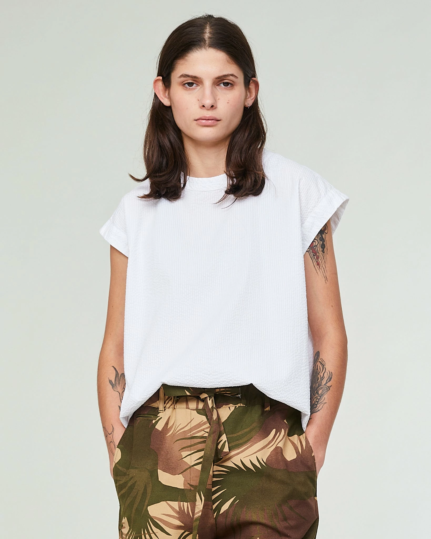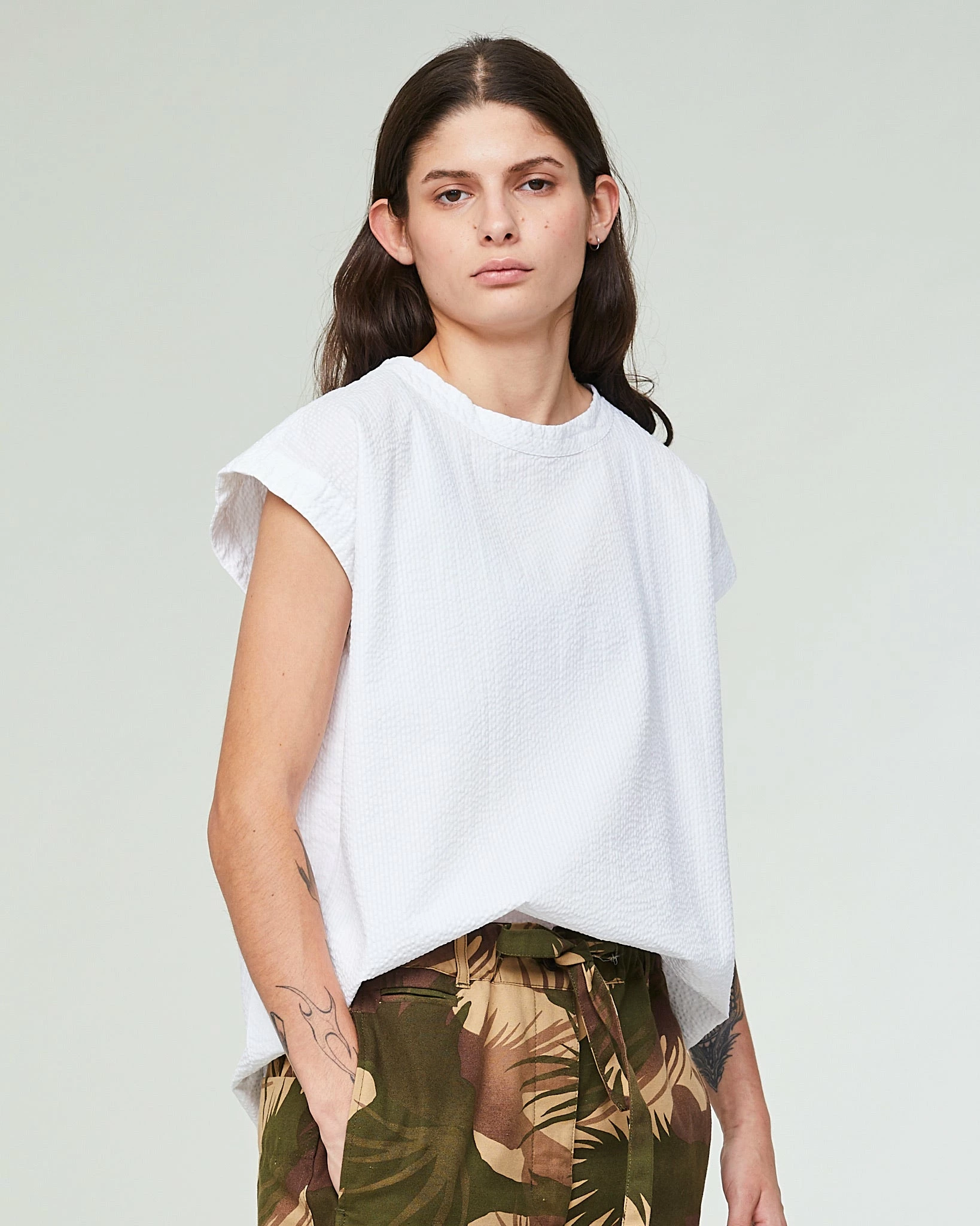 - G.o.D. Gardener Top in Seersucker Cotton White