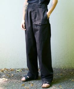 Inspired by a vintage pair of post-WWII Belgian battle dress military trousers, this is a loose fit with straight legs and a regular waist. What especially makes these stand out is the big map pocket on the thigh and the smaller front pocket on the opposite leg. Finished with 2 back pockets. Made from a premium rip stop cotton fabric.