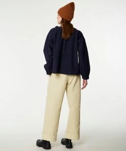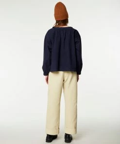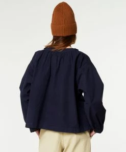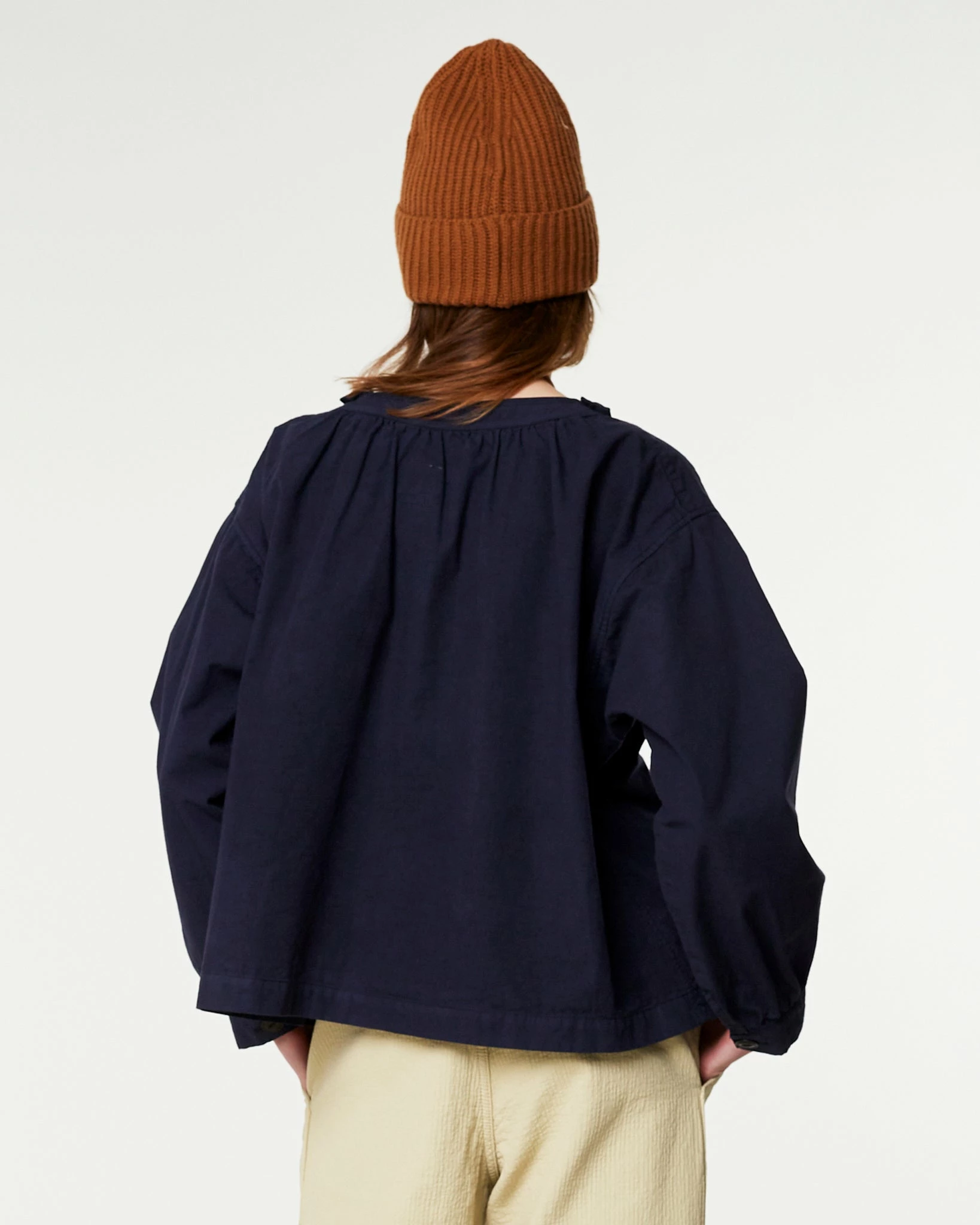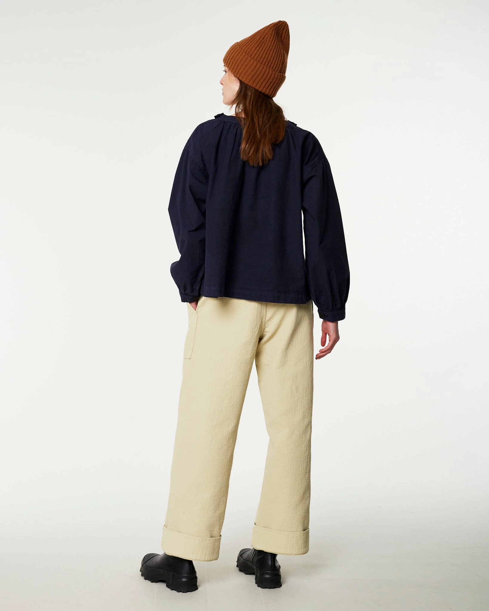 A new fit in our range of shirts. The Harvest Smock is a loose fitting throw-over shirt, with dropped shoulders and a boxy shape. A simple round collar, with a single button closure on the shoulder. The subtle pleats on the front give it an extra feminine touch.Â