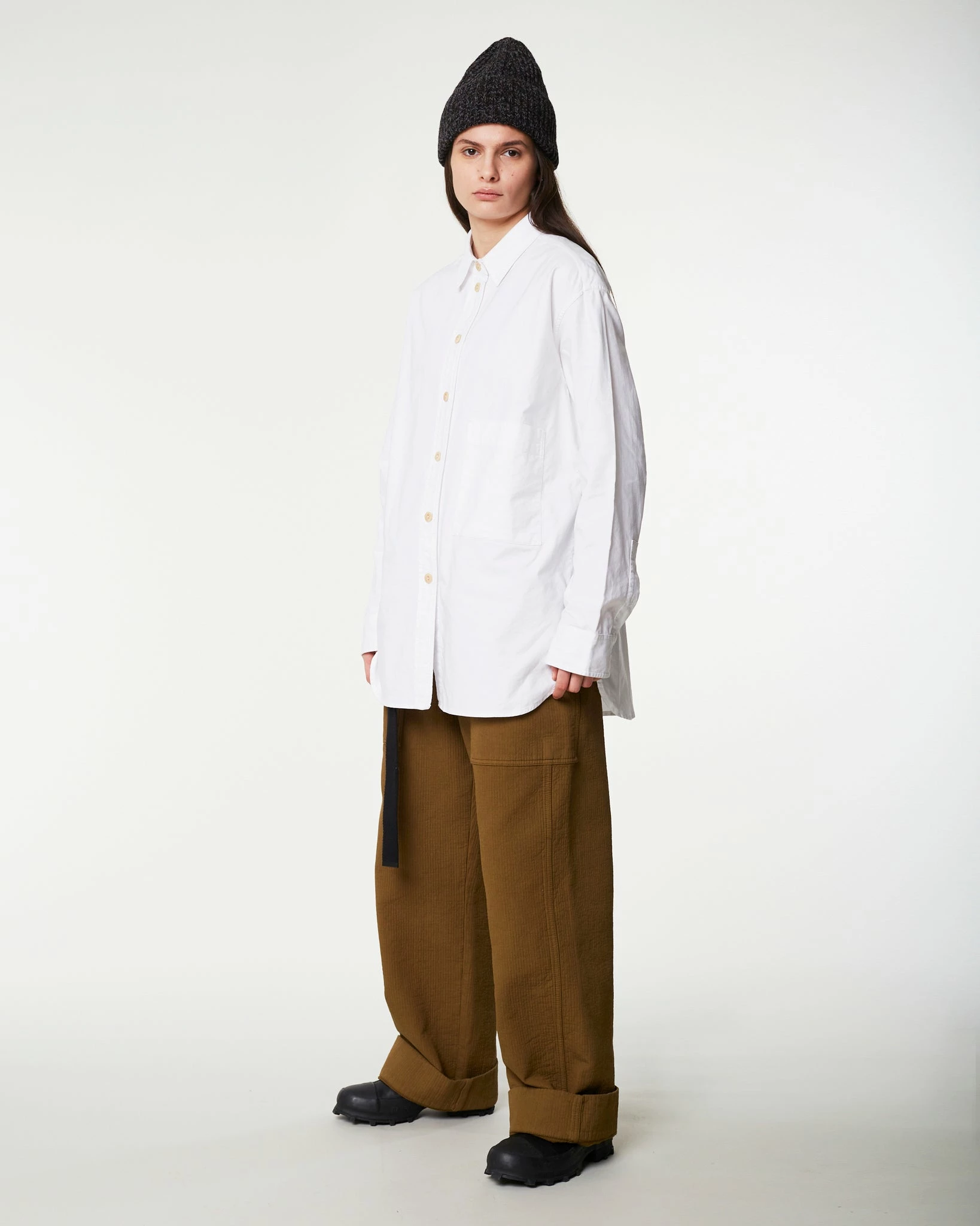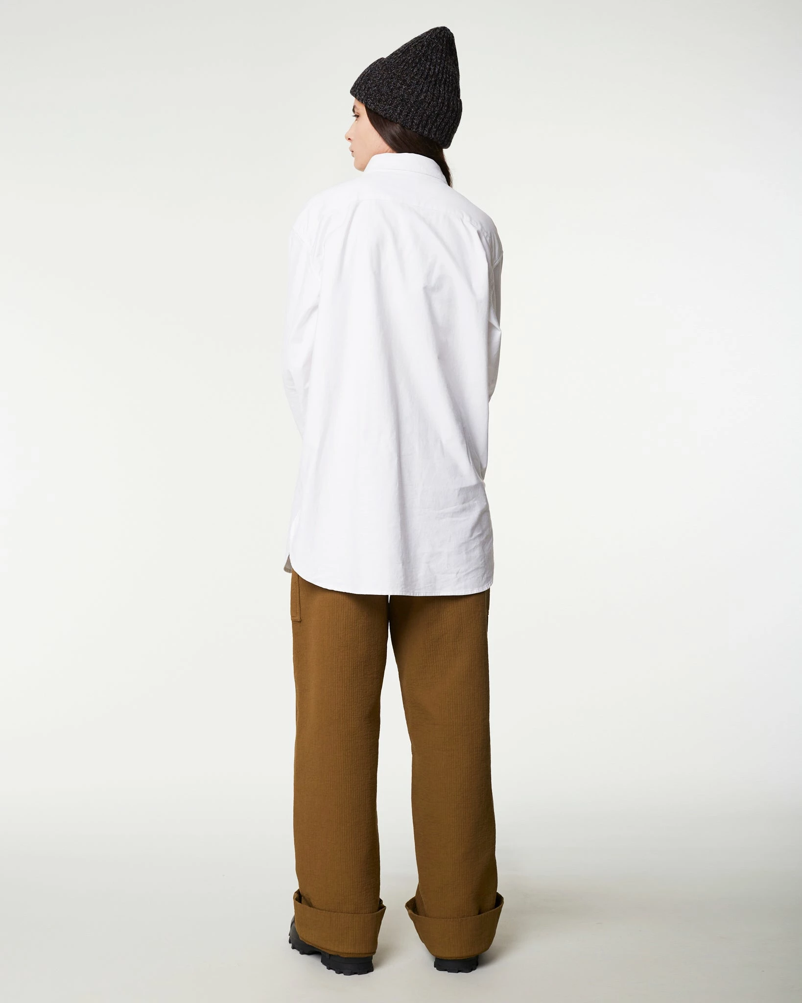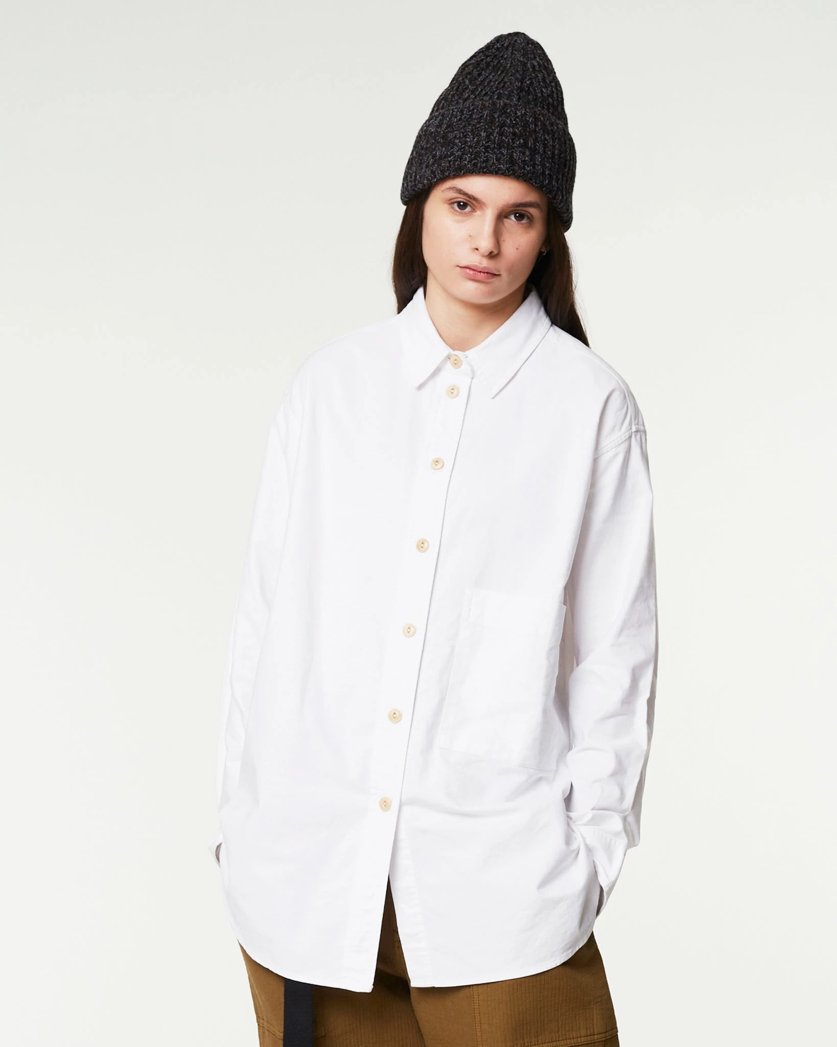 Take that classic 80s dad shirt and make it your own. This one’s oversized, with a regular cut, classic curved hems and a big single breast pocket positioned a little lower on the chest. Made from a white oxford cotton, finished with Corozo cat-eye buttons.
