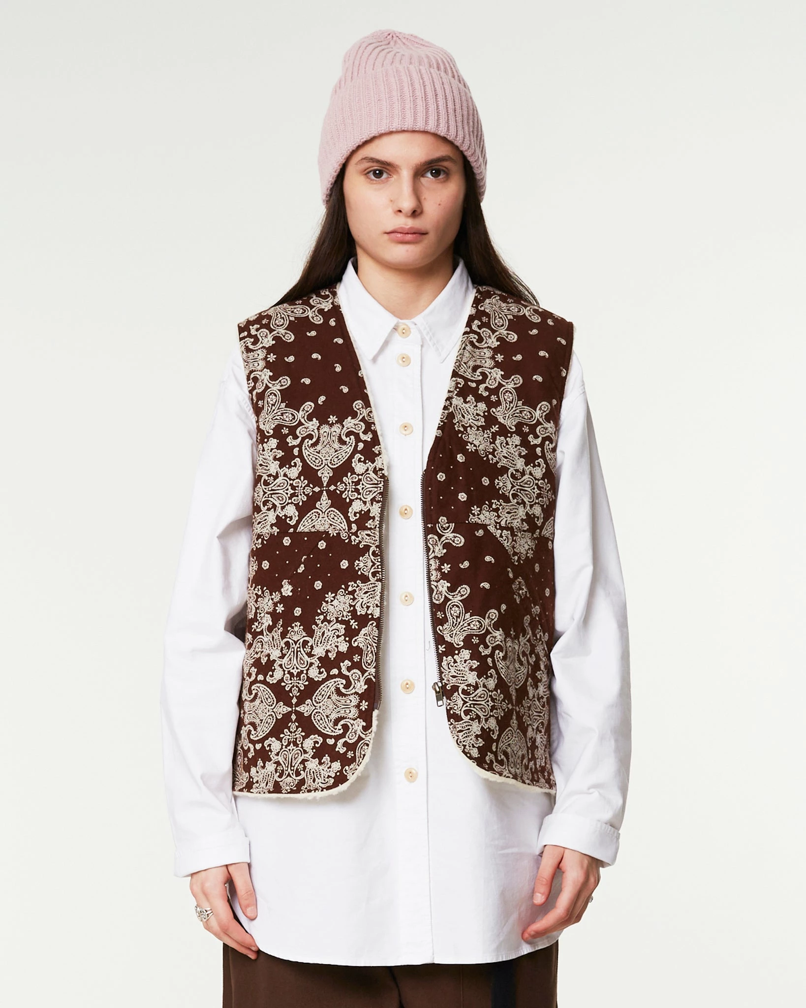 - G.o.D. Reversible Mountain Vest in Velvet Bandana & Faux Fur