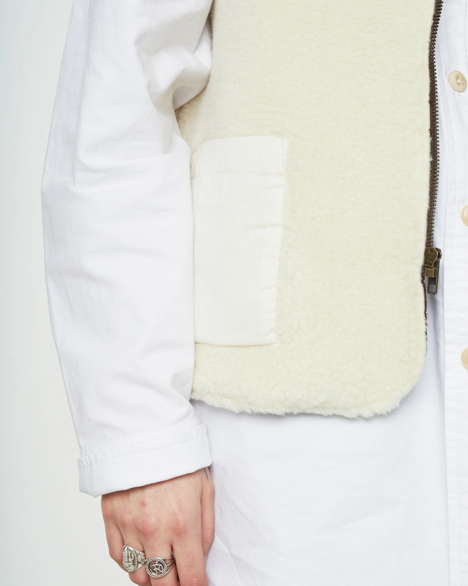 The perfect extra layer? You’ve found it. This reversible sleeveless vest was designed to fit perfectly in all types of outfits. As an extra layer underneath your winter attire, or on top of whatever you can think of. Exclusive Japanese velvet bandana on one side, off white faux fur on the other!