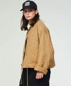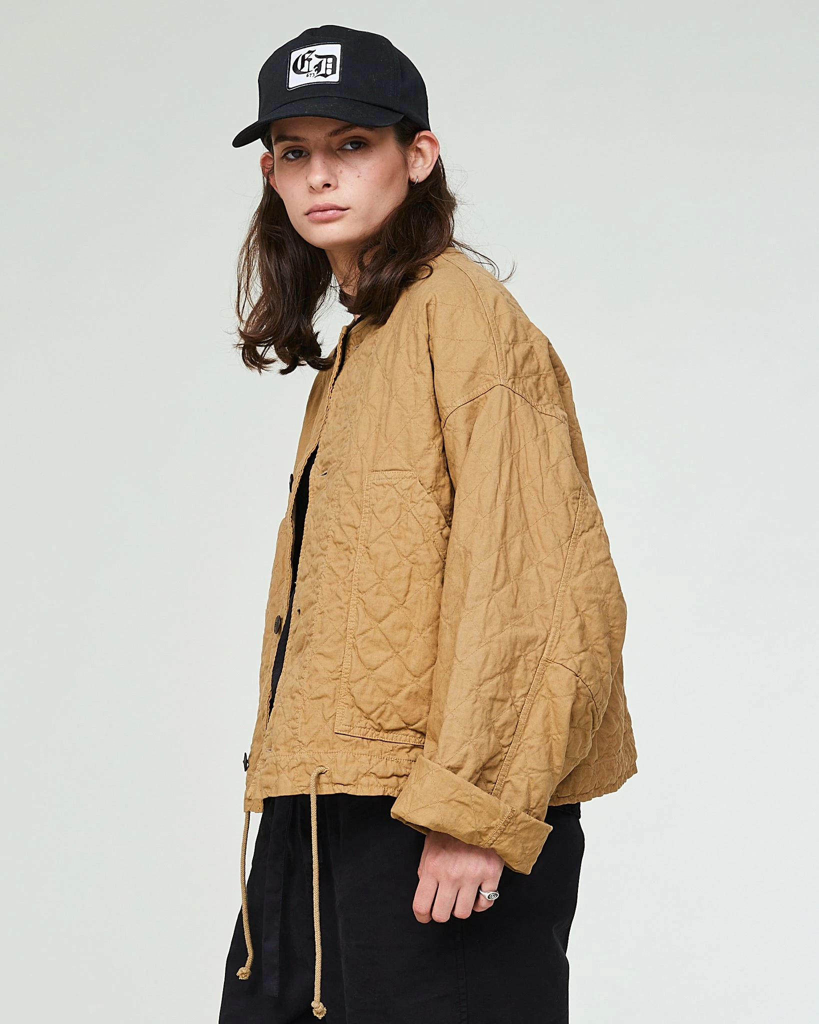 Based on a vintage army jacket, the G.o.D. Nuclear Jacket fits loose and boxy. A nonchalant style with a lot of attitude, meant to be worn loosely. This cool quilted version was made from a premium cotton. Features 2 large front pockets, corozo buttons and a drawstring in the hem.