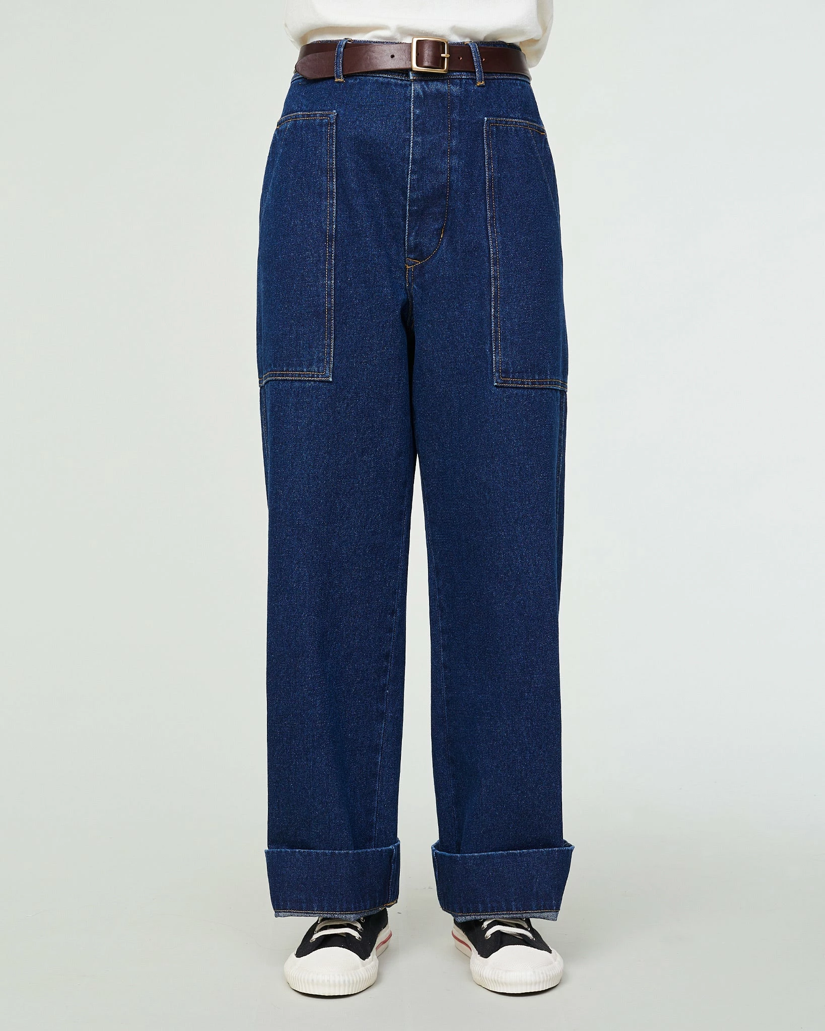 Our Sailor Fatigue pants were designed to offer both attitude and timeless military-inspired style. High on the waist, with loose and straight legs. Roll ’em up or don’t, they’ll look great either way. These were made from a beautiful denim with a unique structure. Finished with 2 applied fatigue-style front pockets and 1 jet pocket on the back.Â