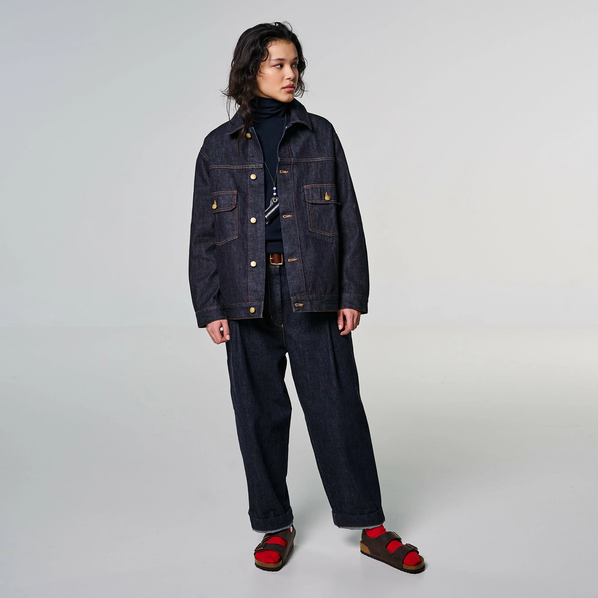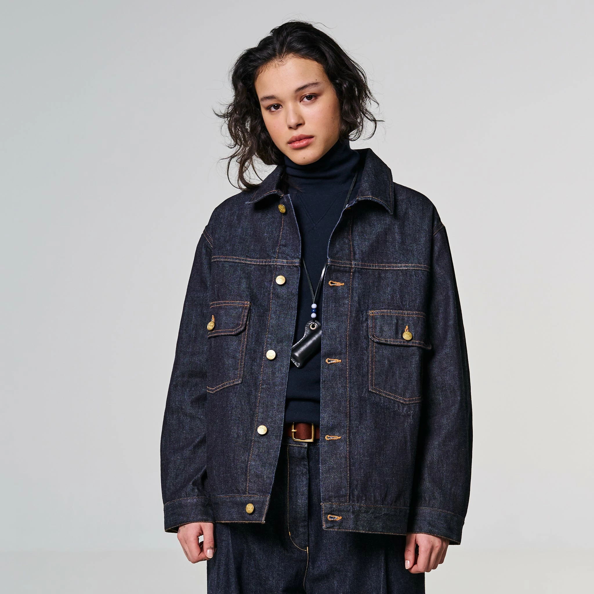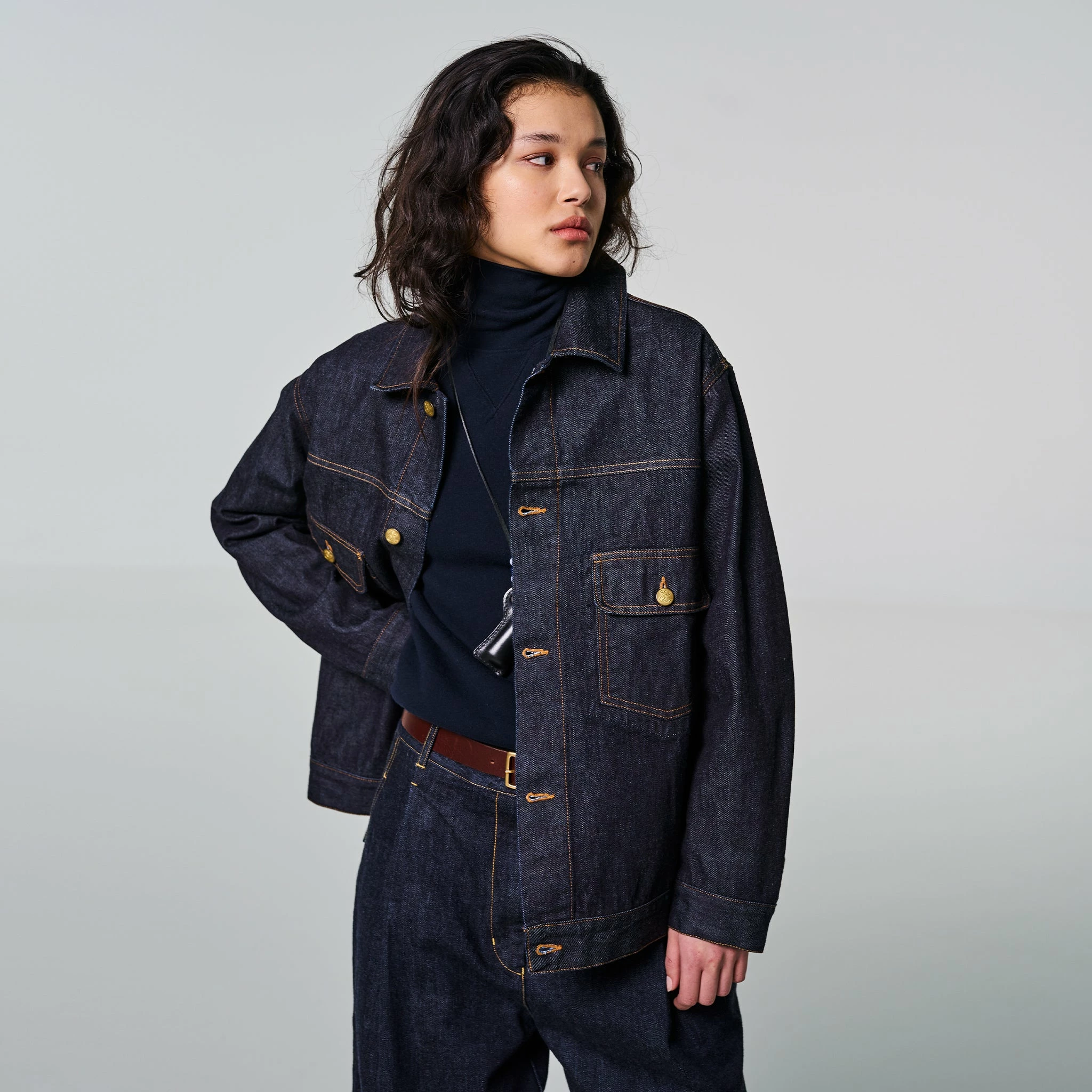It’s finally here, the female counterpart to our men’s Type Dust denim jacket. This is a boxy fit inspired by the well-known and loved 1950s style Type II jackets. Features 2 front chest pockets with tonal stitching and one big inside pocket. Classic 1 rinse wash. Made in Japanese selvedge denim. Timeless style, durable denim.