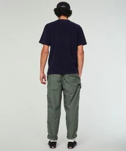 The Gonz is all about comfort, so yes, we went all the way here. Super relaxed and easy to wear, with a loose fit, lowered crotch and tapered legs. Finished with an elasticated waistband and drawstring, in a lizard green rip-stop nylon.