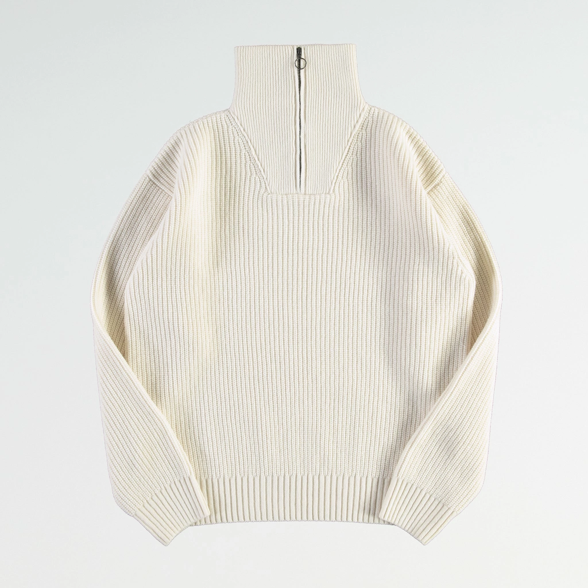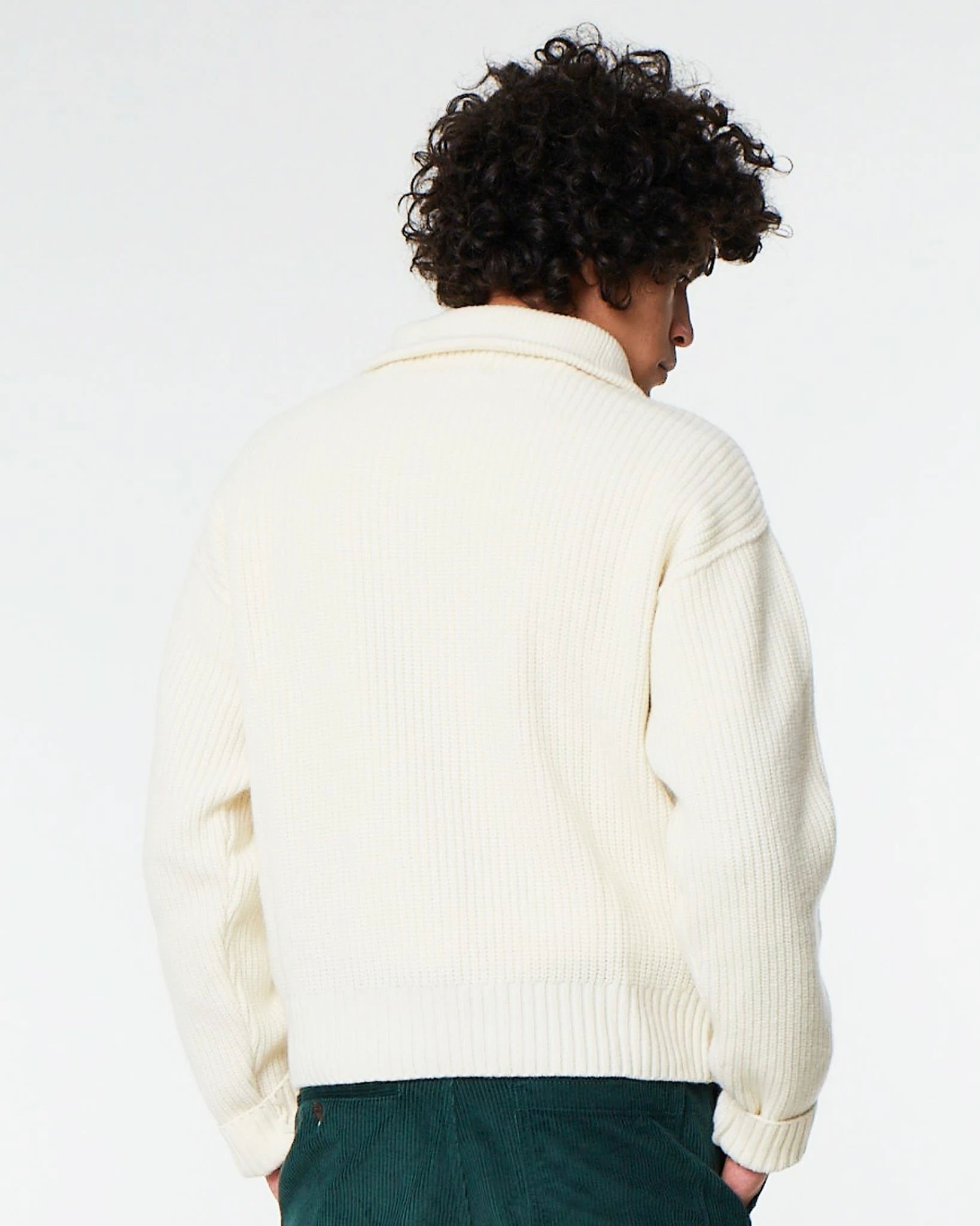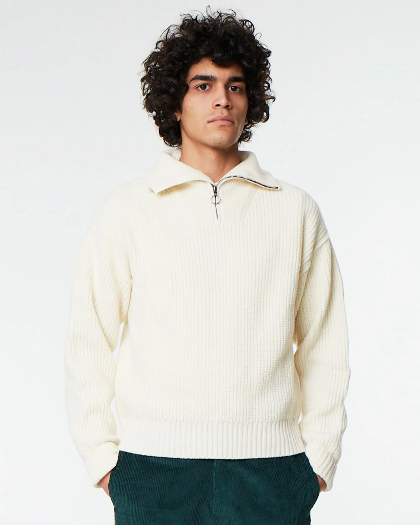Clearly inspired by vintage military wear, this Fly Deck Sweater is chunky, warm and more than solid, made from a premium virgin Merino wool. Finished with a half zip funnel collar.