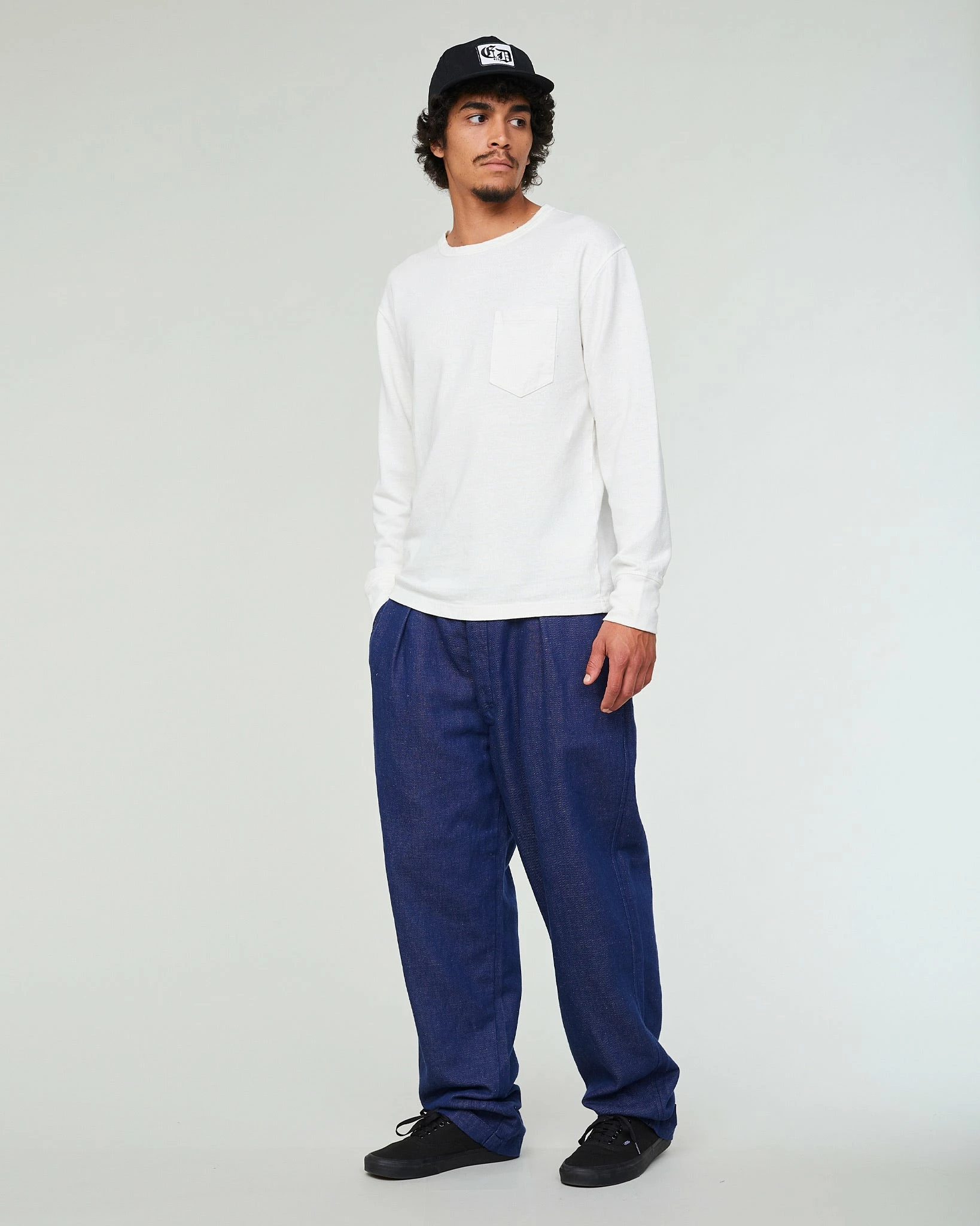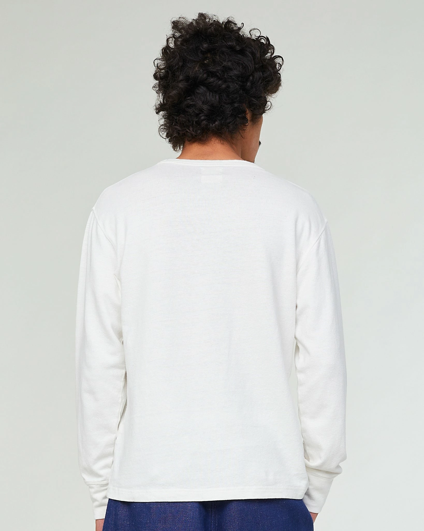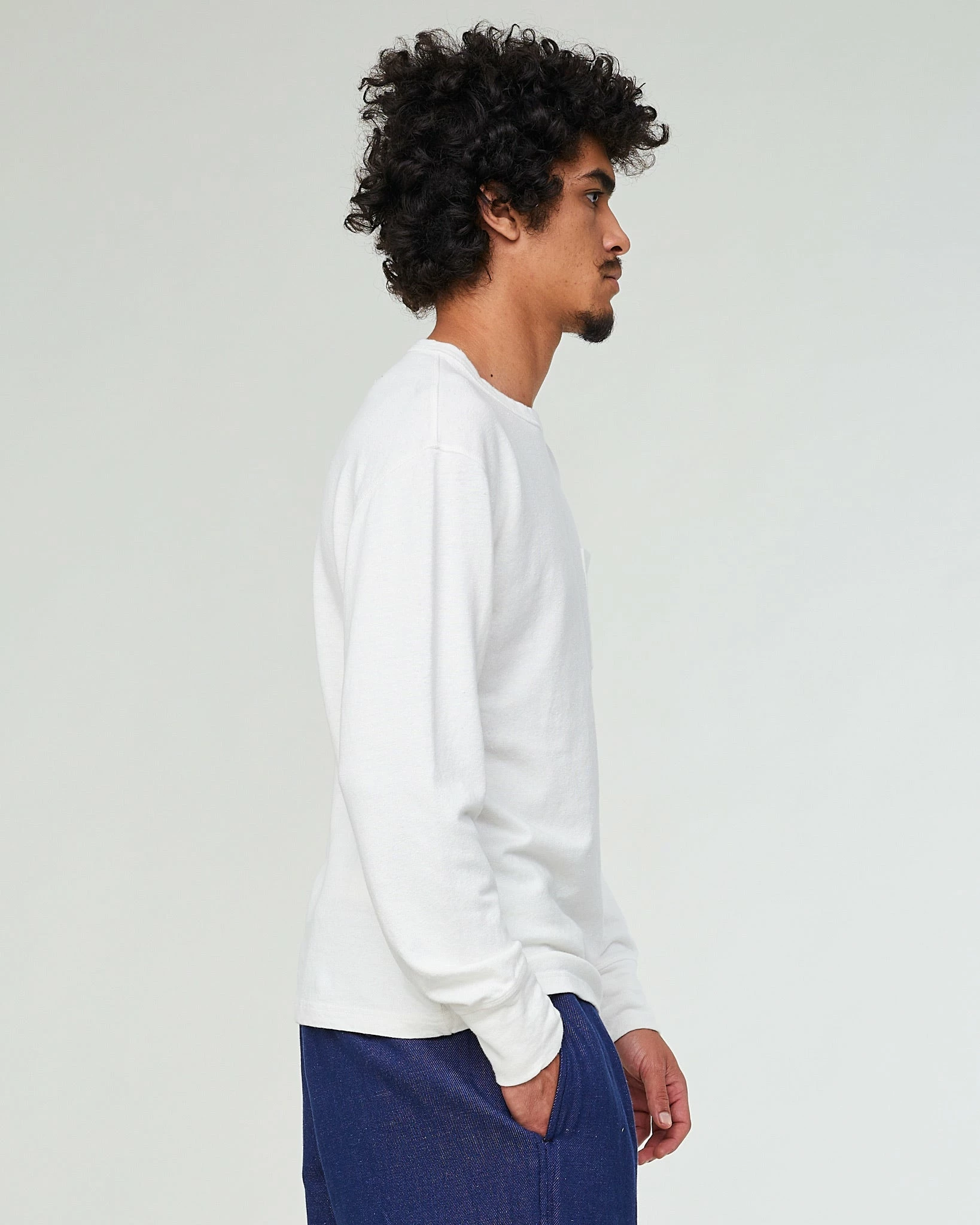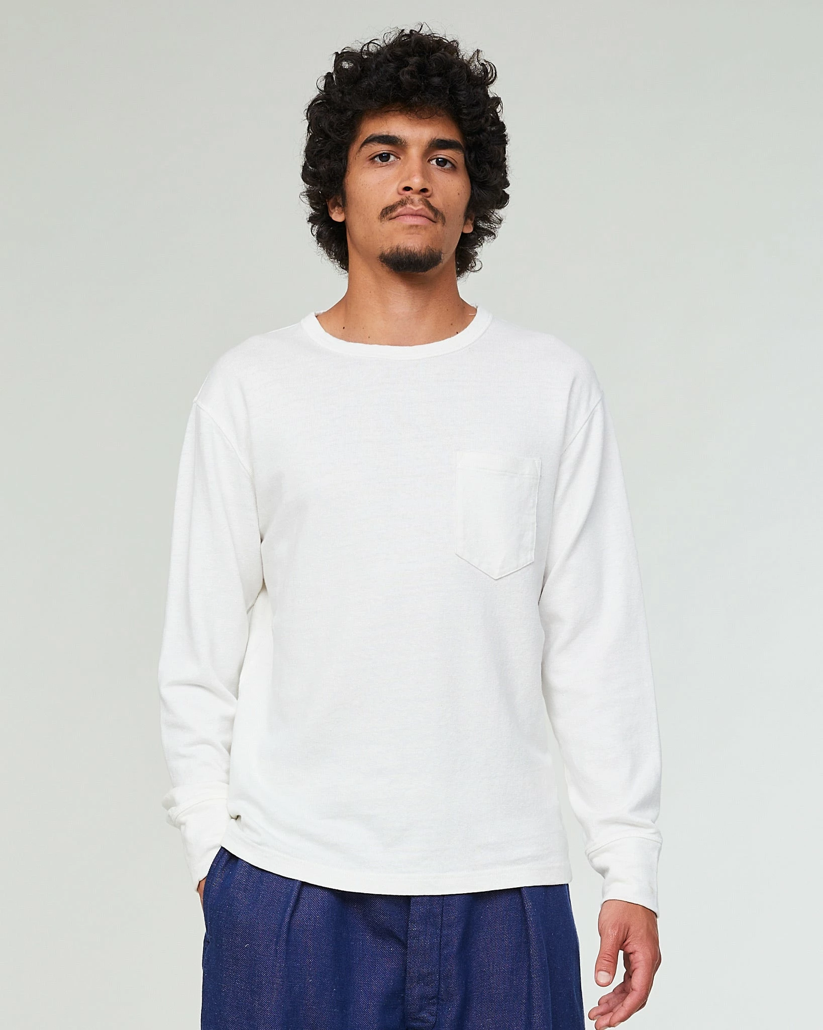 A new longsleeve pocket t-shirt! To offer you an upgrade in a slightly different fabric, we developed this cotton & linen blend with our Portuguese mill, based on a vintage military jersey from our archives. Regular, yet comfy fit, so size up if you prefer an oversized look.