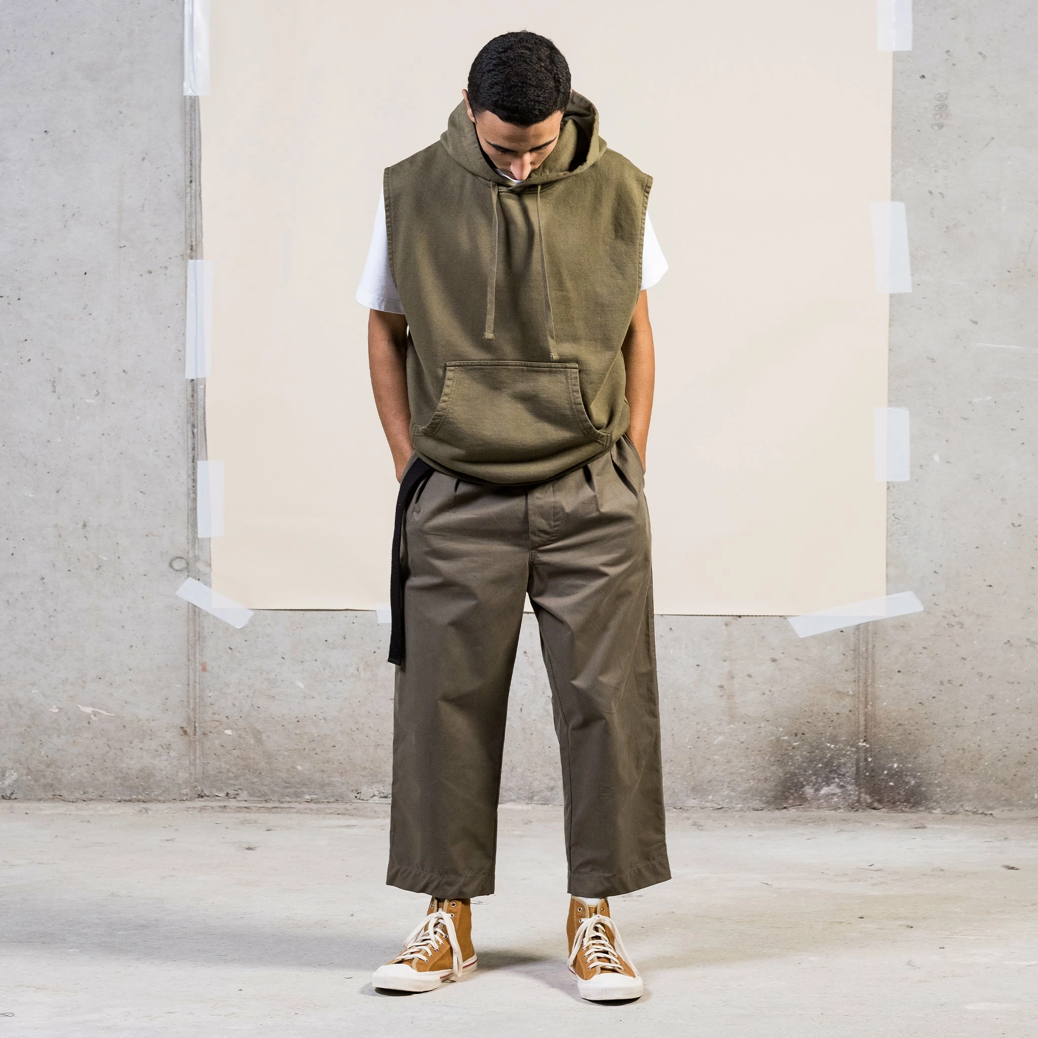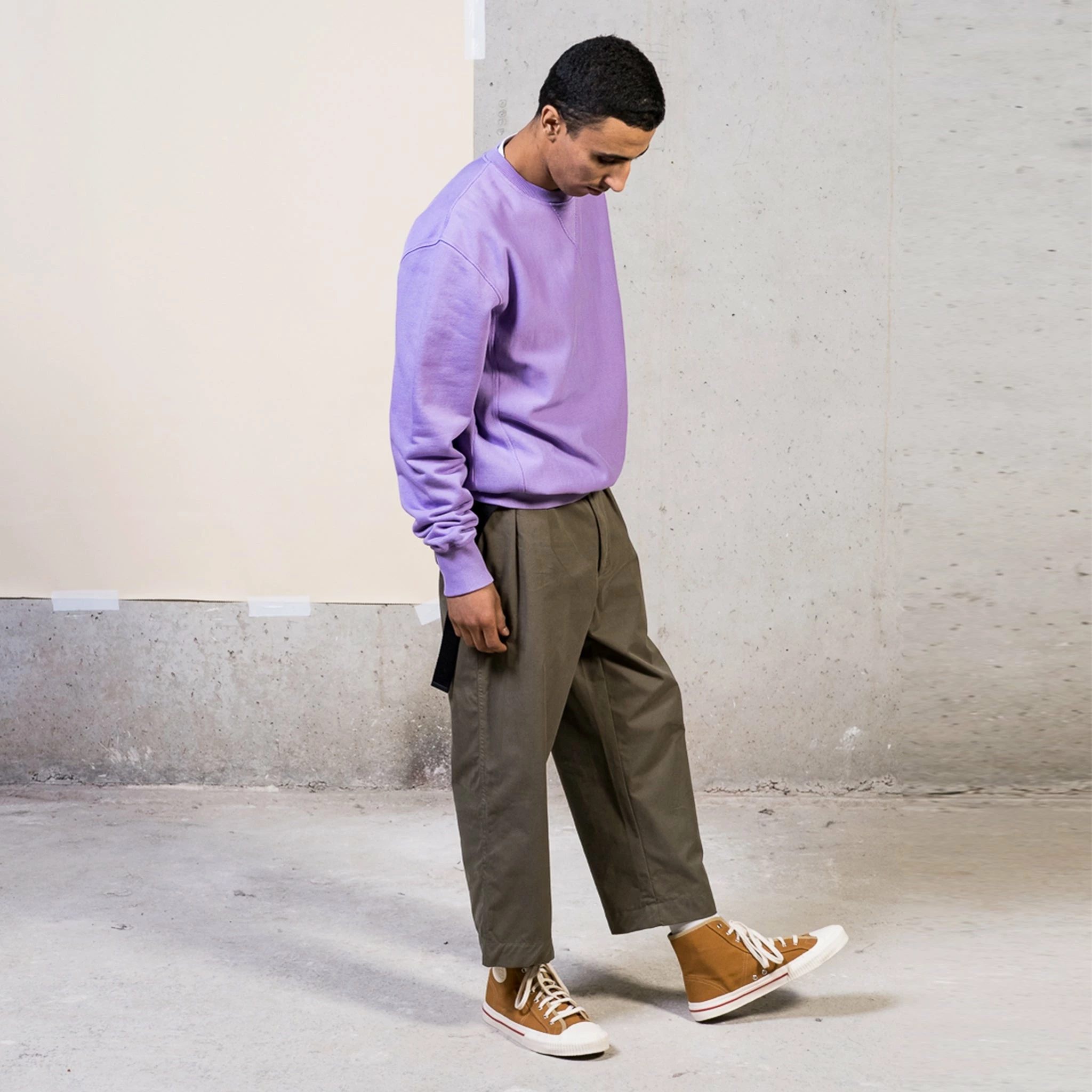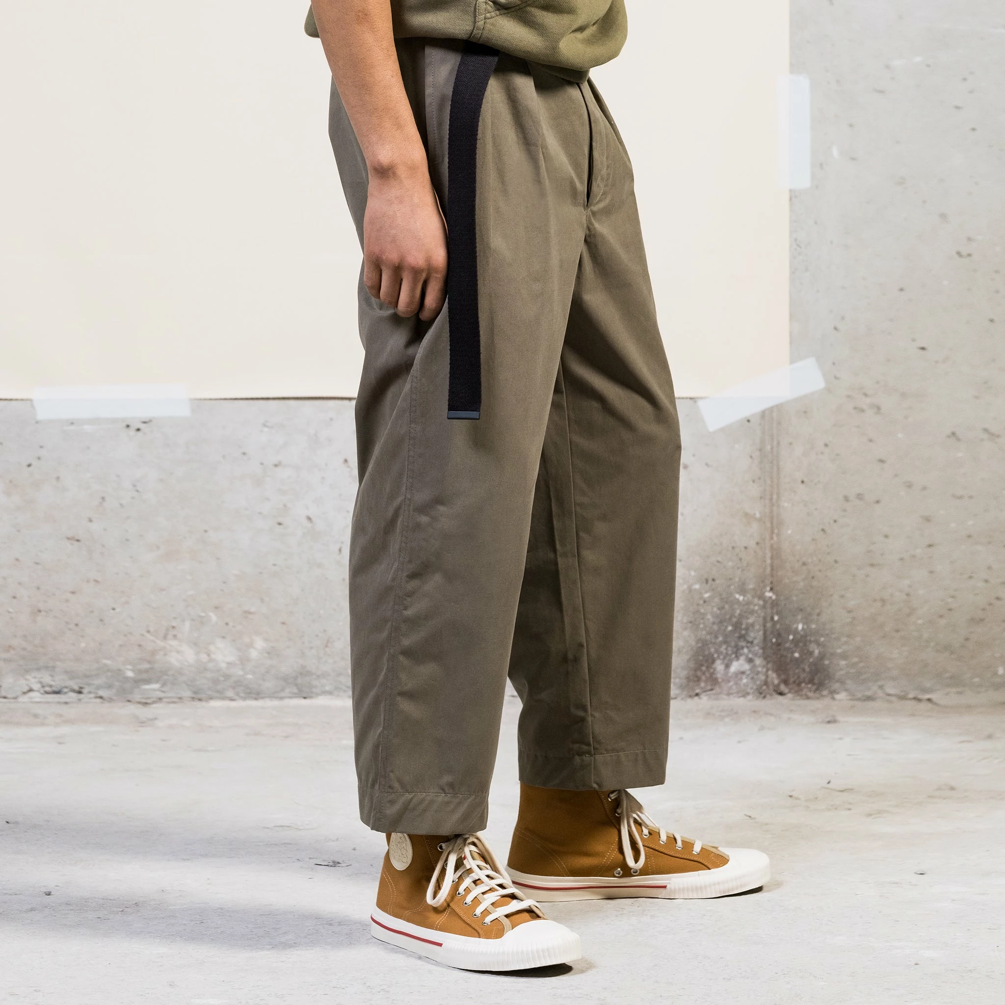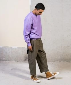 A brandnew fit, created for those that like it extra loose and extra relaxed. High waist, loose legs with a slight taper, with even more volume thanks to the pleated front. You got that right, these are designed to chill in. Made from a top notch crispy cotton, sourced from Brisbane Moss in the UK.