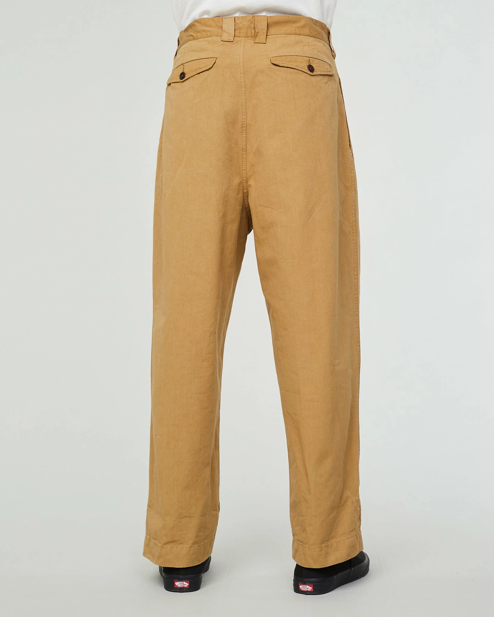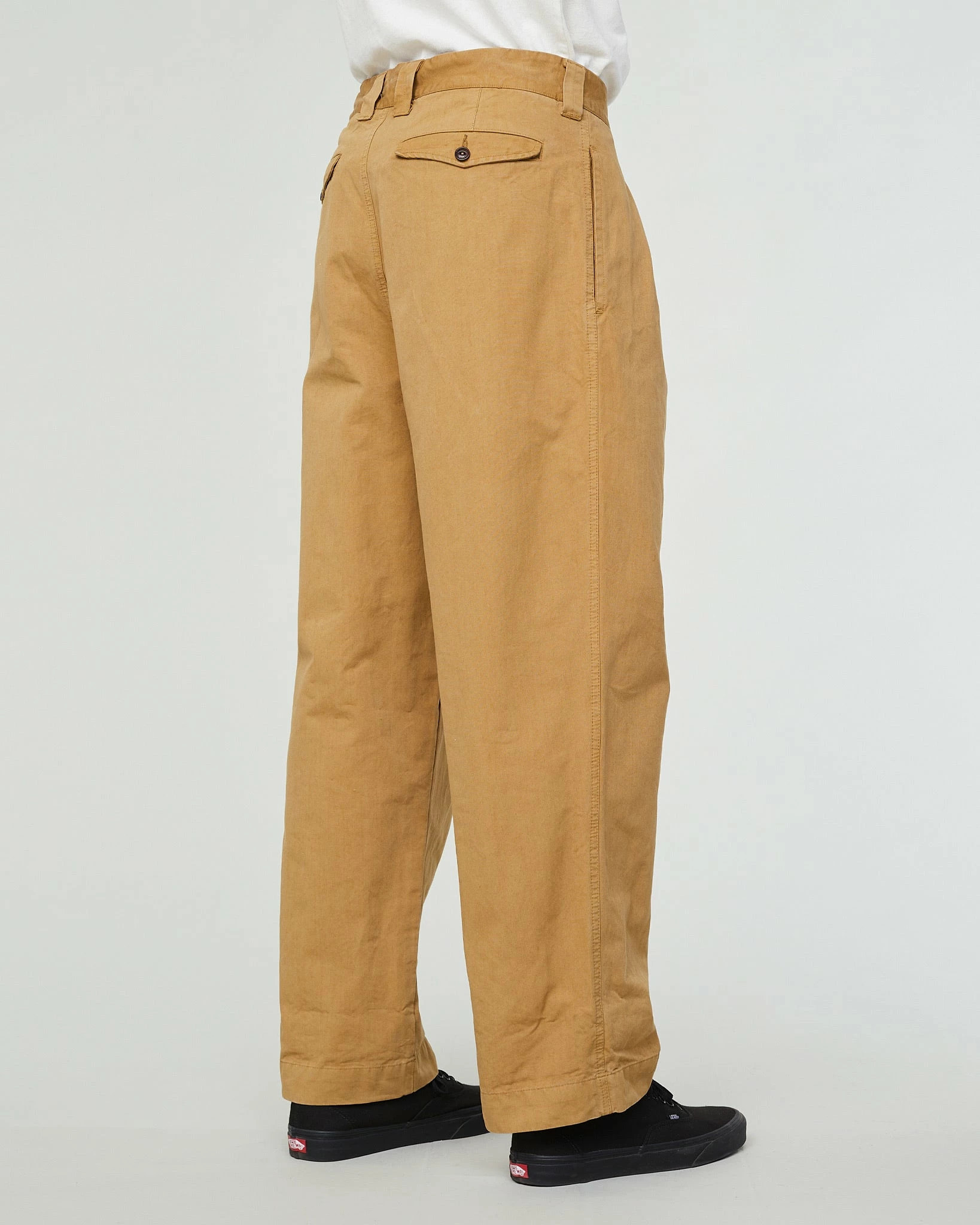 A brandnew fit, created for those that like it extra loose and extra relaxed. High waist, loose legs with a slight taper, with even more volume thanks to the double pleated front. You got that right, these are designed to chill in. Made from a top notch crispy cotton.