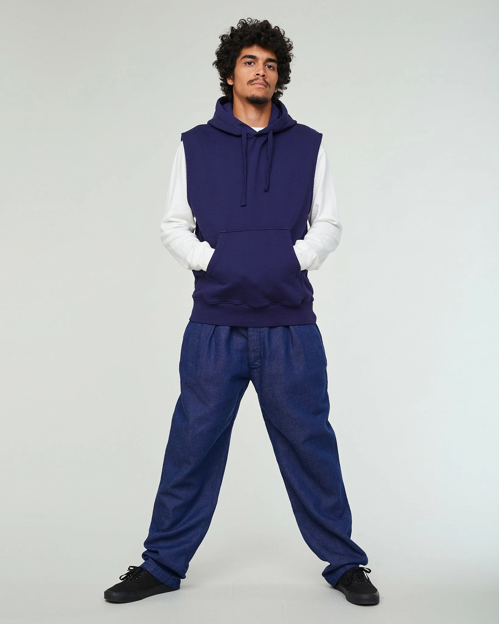 Layer it up like a champ with this sleeveless hooded sweatshirt. Loose and comfy, with a large hood and kangaroo pockets, this one’s a nice change from your regular hoodies and sweatshirts and works in different settings and combos.Â