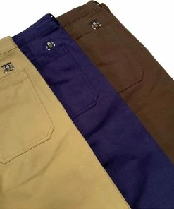 A true staple in our men’s collection. Our Service Chino was made from a top notch cotton twill fabric and cut to fit as comfy as can be: regular on the waist, with straight legs that are slightly tapered. Finished with 2 different back pockets, tonal stitching and lined with HBT cotton.Â