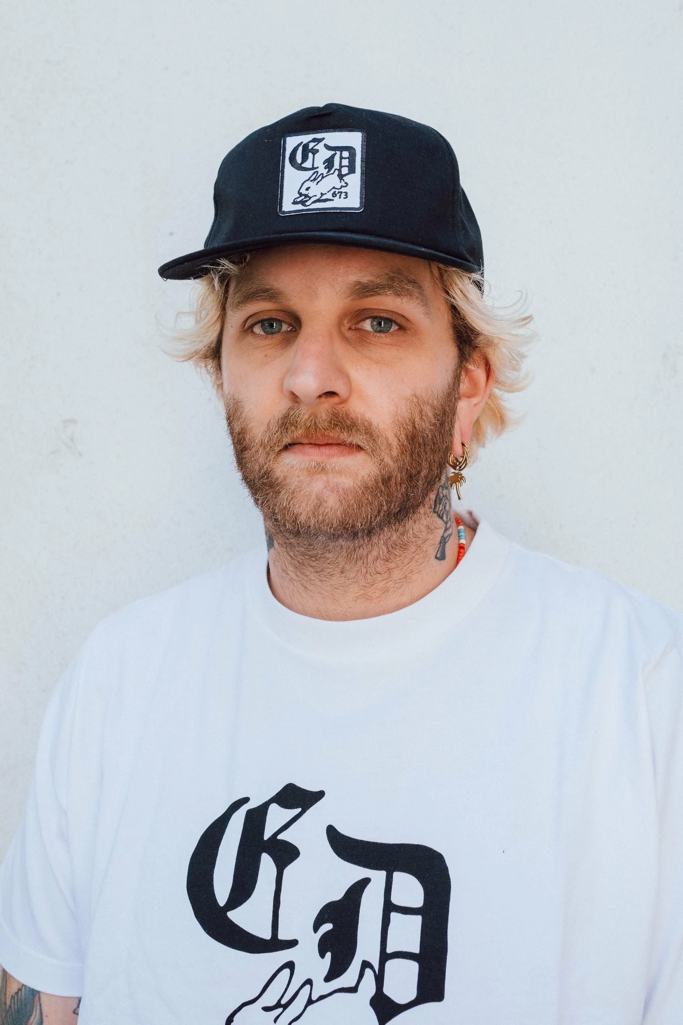 Lightweight classic snapback in black, with a crushable unstructured upper and vintage gas station type of vibe. Features the Eat Dust bunny as a front patch.