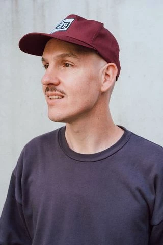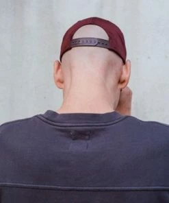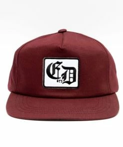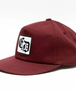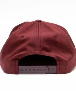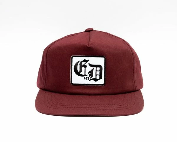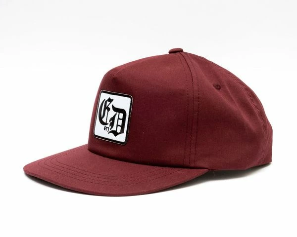 Lightweight classic snapback in cherry red, with a crushable unstructured upper and vintage gas station type of vibe. Features the ED673 logo as a front patch.