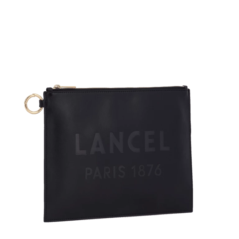 history Cool chic and timeless, the ESSENTIAL line modernizes the essentials of your wardrobe. Recognizable by its hot-stamped logo deliberately played in oversize, the models are made of smooth cowhide leather for a modern and dynamic look. Offering key features to organize your essentials, the line is perfectly adapted to the needs of daily life and city life. details Smooth cowhide leatherPouch Textile lining Hot-stamped “LANCEL” logo Metal carabiner Made in Italy REF:A1234510TU size 30 x 22 x 0,5 cm care We advise a careful application of the “crème essentielle” to revive and protect your product.