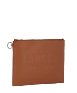history Cool chic and timeless, the ESSENTIAL line modernizes the essentials of your wardrobe. Recognizable by its hot-stamped logo deliberately played in oversize, the models are made of smooth cowhide leather for a modern and dynamic look. Offering key features to organize your essentials, the line is perfectly adapted to the needs of daily life and city life. details Smooth cowhide leatherPouch Textile lining Hot-stamped “LANCEL” logo Metal carabiner Made in Italy REF:A1234520TU size 30 x 22 x 0,5 cm care We advise a careful application of the “crème essentielle” to revive and protect your product.
