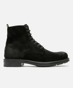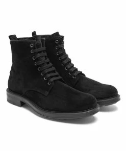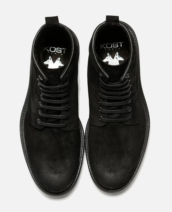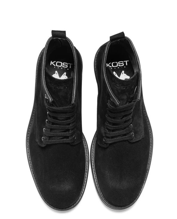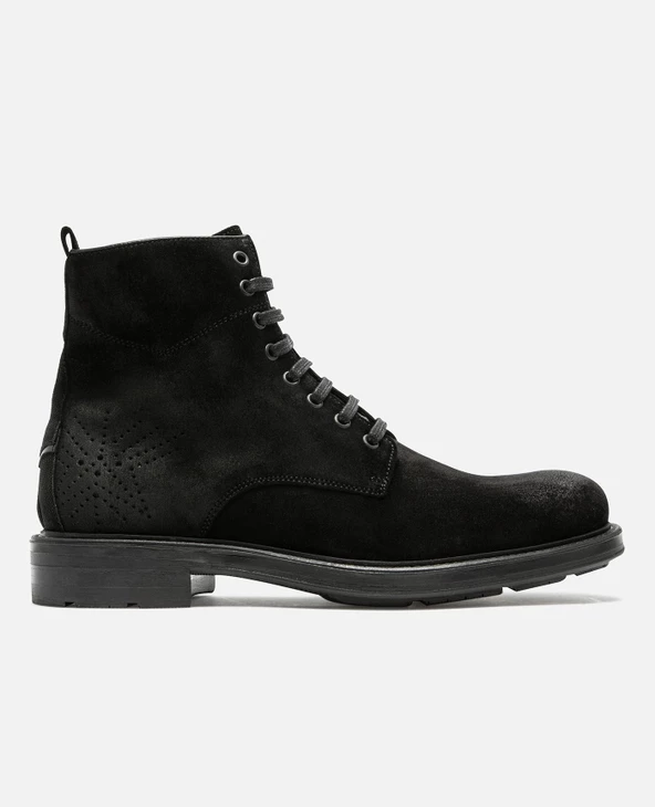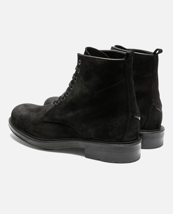 Ce mod猫le de bottines en cuir velours 脿 lacets pour homme affirme le style rock. On l’associe avec une tenue simple pour les mettre en valeur : un pull et un jean seront les pi猫ces parfaites.