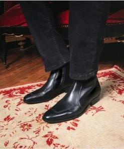 Ces bottines noires à talons pour homme sont scrupuleusement fabriquées dans les plus belles peaux. Hautes de gamme, elles sont montées avec la technique cousu blake pour une meilleure solidité.