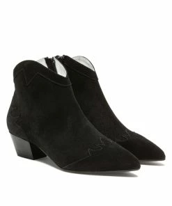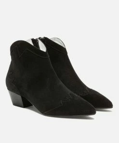 Un vent d’ouest souffle sur nos boots LUNA 脿 l’allure santiag. En cuir velours noir surpiqu茅, elles ont un bout pointu et un petit talon pour donner un style tout en 茅tant confortable.