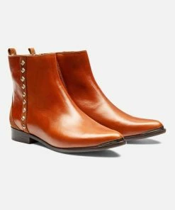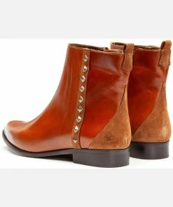 Ces bottines sont originales avec leur mix mati猫res cuir et cro没te velours cognac. Ces petits d茅tails clout茅s sur le long de la cheville lui donne une allure rock. Mod猫le fabriqu茅 au Portugal.