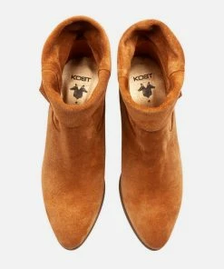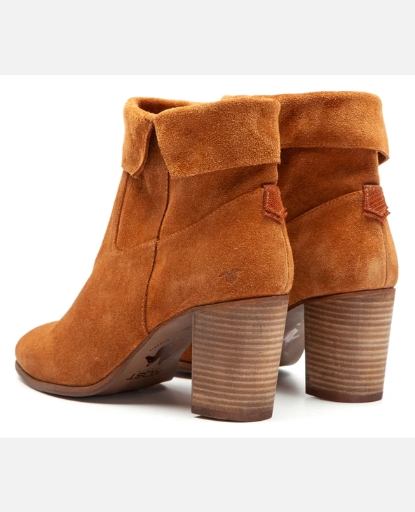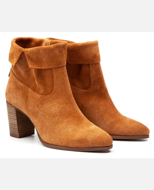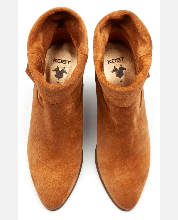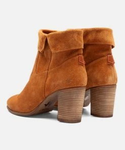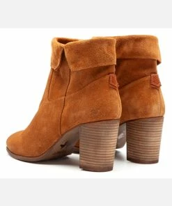 Ces bottines 脿 talons cognac en cro没te velours ont une doublure cuir et disposent d’une semelle int茅rieure cuir. Le talon de 5 cm et le bout arondi 茅lance la jambe. Fabriqu茅es au Portugal.