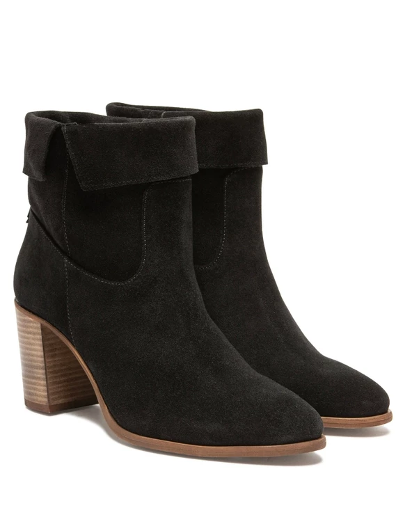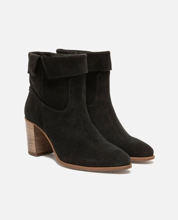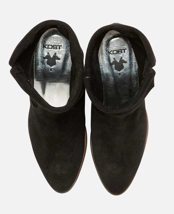Ces bottines 脿 talon noires pour femme sont douces et souples avec leur mati猫re cuir velours noir. Elles se marient parfaitement 脿 toutes les tenues hivernales.