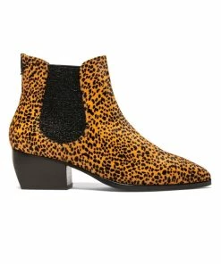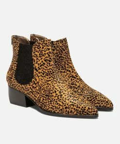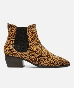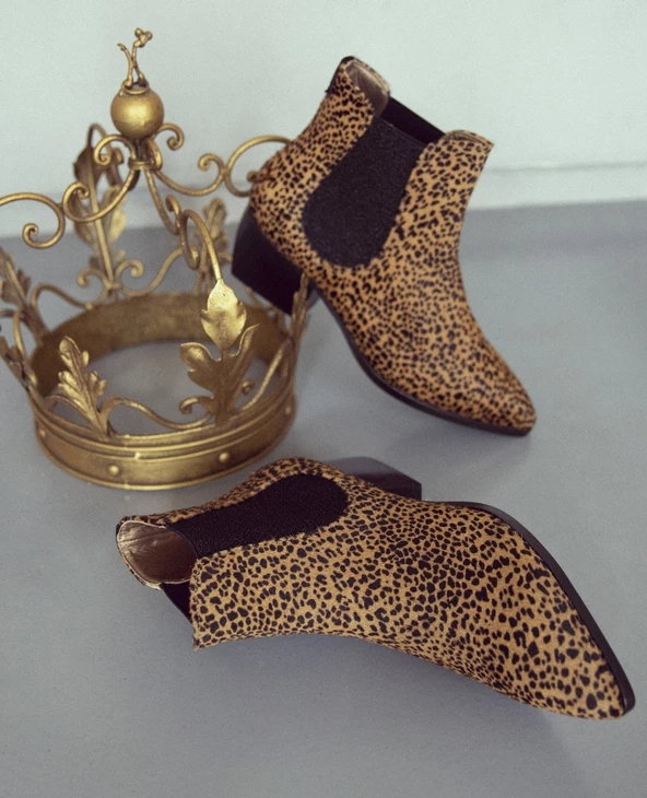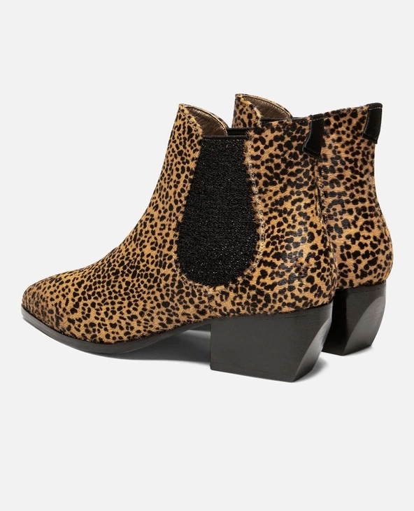 Ces Chelsea boots à talon sont confectionnées en croûte velours léopard. Leur élastique noir s’habille de lurex pour apporter un côté lumineux à la tenue et se révèle très pratique pour retirer et enfiler la chaussure.
