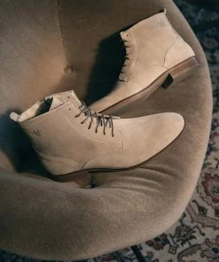 Une bottine 脿 lacets en cro没te velours beige aux d茅coupes 茅pur茅es. Elle est dot茅e d’une semelle en gomme pour l’inspiration outdoor chic. Mont茅e en cousu Blake permettant de rendre la chaussure solide et l茅g猫re.