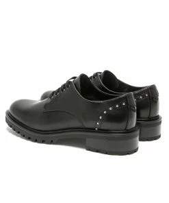 Élégantes et chics, nos derbies en cuir noir se distinguent par leur détail clouté sur le talon. Un véritable atout rock pour la tenue.