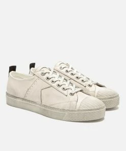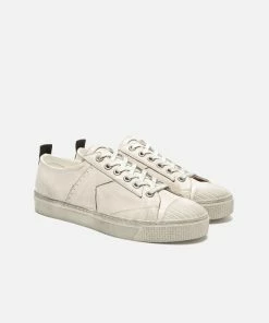 La semelle et les lacets ont un effet usé qui donnent une attitude nonchalante et décontractée à la silhouette.