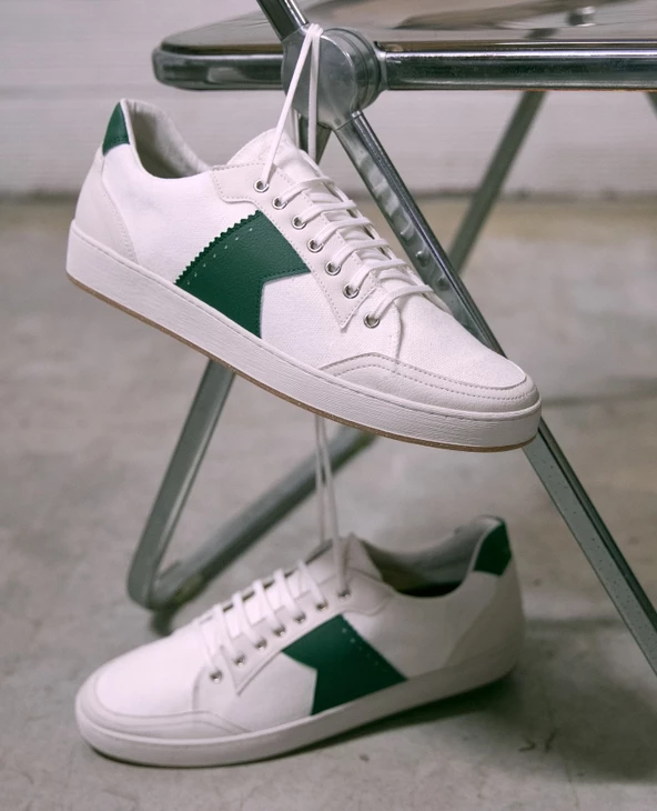 KOST Sneakers Toile Blanc Et Vert Vegan Made In France Homme