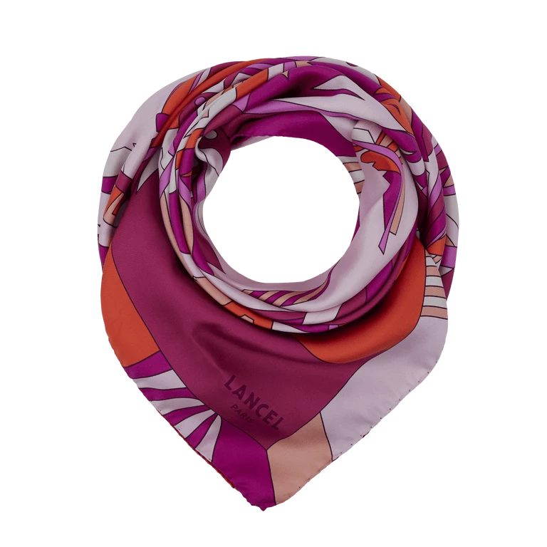 history Conceived and designed in the spirit of the House of LANCEL in its Parisian studio, the collection of silk squares with exclusive and trendy patterns is made in Italy near Como, by craftsmen renowned for their excellent know-how. details 100% silkCarré motif Arabesque Fabriqué en Italie REF:A08482SATU size 90 x 90 cm