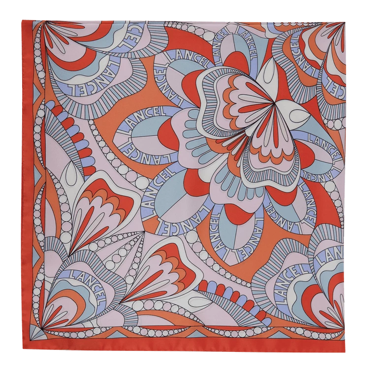 history Conceived and designed in the spirit of the House of LANCEL in its Parisian studio, the collection of silk squares with exclusive and trendy patterns is made in Italy near Como, by craftsmen renowned for their excellent know-how. details 100% silkFloral pattern silk square Made in Italy REF:A0846816TU size 90 x 90 cm