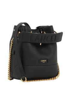 history Young and accessible, Ninon by Lancel is our new line of fashionable and urban bags, to be worn day and night. Modern and multifaceted with its sliding leather and chain shoulder strap offering an ingenious multi-carry, Ninon by Lancel is characterised by its graphic and assertive style. The signature elements of this strong personality line are the maxi logo handle, the curved details and the asymmetrical zip, which give it a trendy rock look.  The bags are made from light, round-grained cowhide leather, which is both structured and supple. details Grained cowhide leatherTextile lining Adjustable chain and leather shoulder strap Removable handle One inside patch pocket Metal bottom feet Made in Italy REF:A11466JDTU size 16 x 19 x 10 cm care We advise a careful application of the “crème essentielle” to revive and protect your product.
